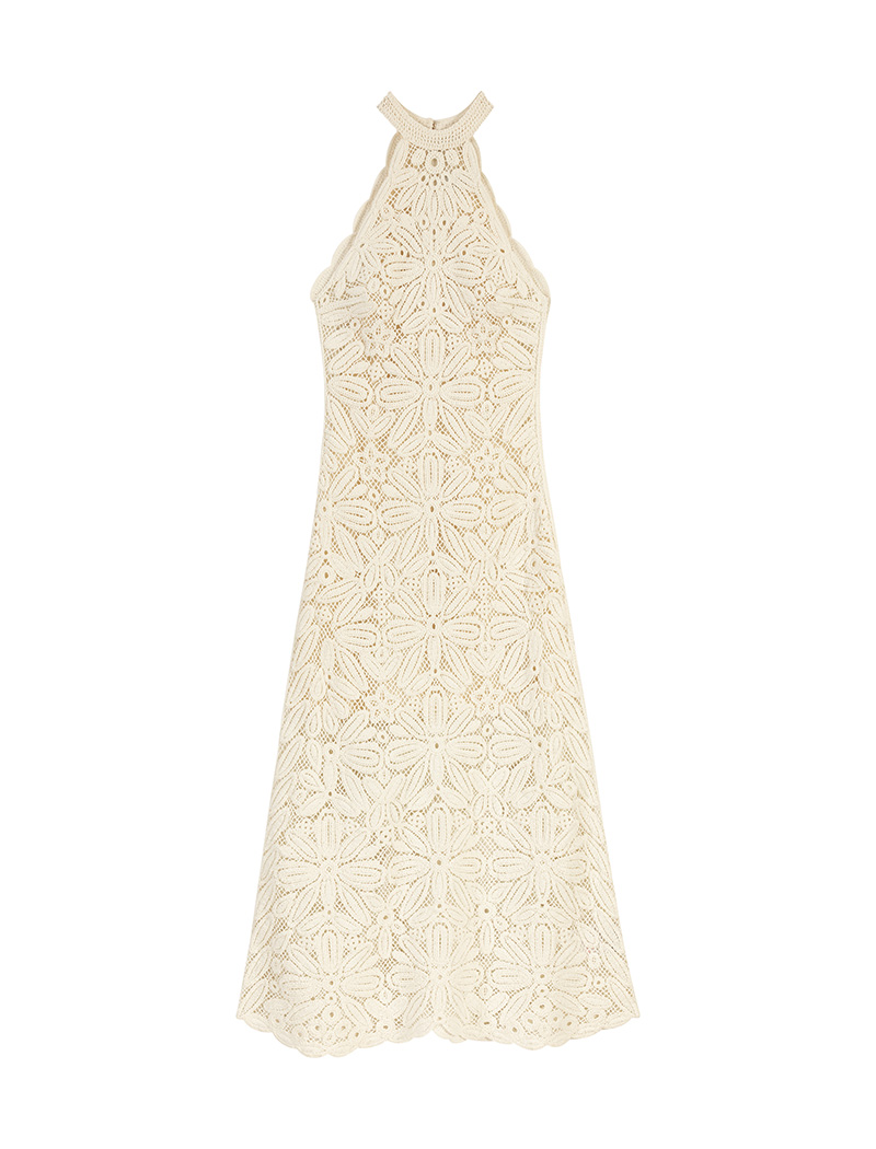 Vestido de crochet blanco de la colección “Tropical Purple”