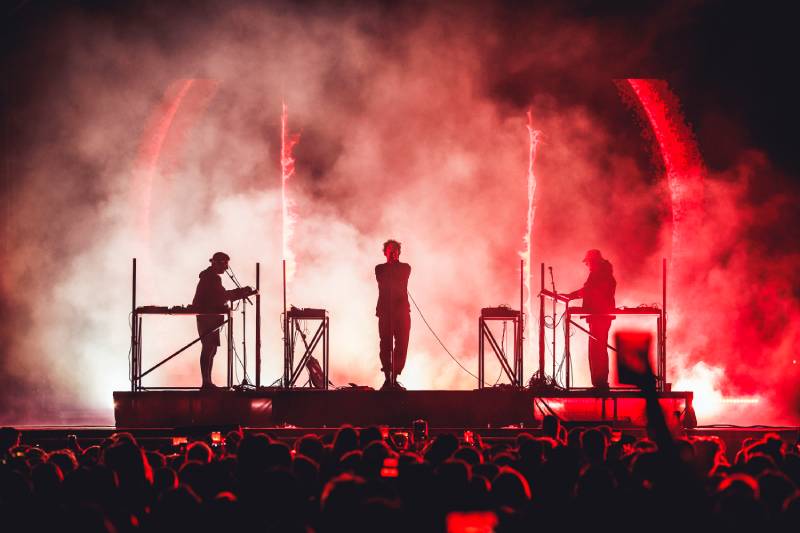 ¿Te suena el concepto de super banda? Esos grupos de música formados por personas de dos o más bandas de música, que ya les iba bien pero, para dar un paso más allá, deciden juntarse con otros proyectos interesantes. Este es el caso del trío Moderat. El Sascha Ring fundó Apparat en el año 1996 y, desde entonces, su música electrónica ha recorrido el mundo entero. Por su parte, el dúo Moderat (1996), hijo berlinés de Gernot Bronsert y Sebastian Szary, también cuenta con el mismo recorrido. Era cuestión de tiempo que los tres colegas de toda la vida formaran Moderat. La super banda lleva 21 años girando y ofreciendo la mejor electrónica y, por eso, el Mallorca Live Festival escogió a los alemanes para presentar su último disco, “More D4ta” (2022). Un acierto, el público vibró con el directo que ya ha pasado por festivales como el Sónar Barcelona o ciudades como Madrid.