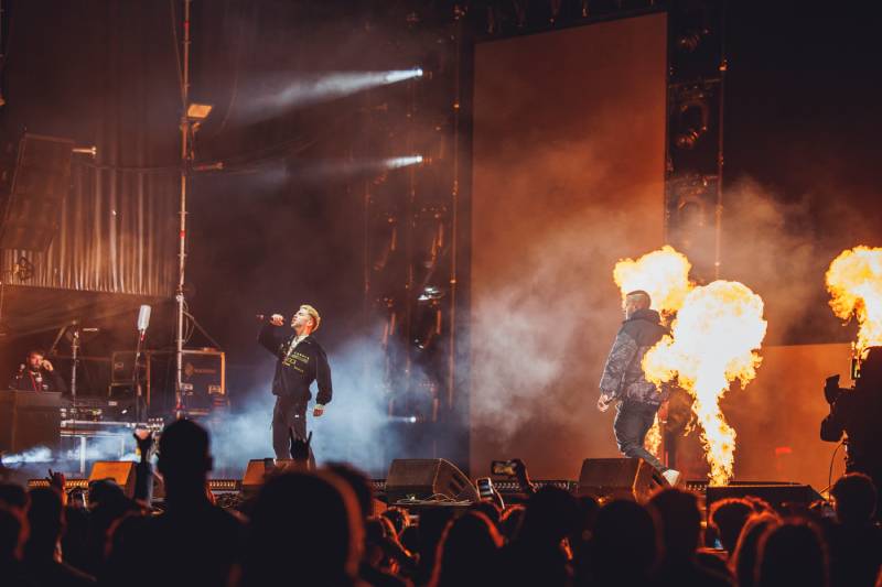 Los del famoso barrio de Aluche (sur de Madrid) llenan estadios, hacen sold out, pero van completamente a su bola. Natos y Waor (@natos_y_waor) son Gonzalo Cidre (Buenos Aires, 1991) alias Natos y Fernando Hisado (Madrid, 1988), conocido como Waor. En el año 2010 estos dos raperos, amigos del alma, decidieron adentrarse en su género favorito y empezar a cantar, solo para conseguir alcohol gratis. 13 años después, la formación cuenta con diez discos. Siete de Natos y Waor y “Luna Llena” (2022) como el último LP y, como Hijos de la Ruina -junto a Recycled J– tres álbumes. Pues bien, Gonzalo y Fernando dieron el mejor concierto nacional del Mallorca Live Festival: carisma, vulnerabilidad, rabia, honestidad y mucha fuerza. Con un telón de fondo formado completamente por pantallas gigantes, su compañero de confianza, DJ Saik, acompañó a los carismáticos frontmen.
