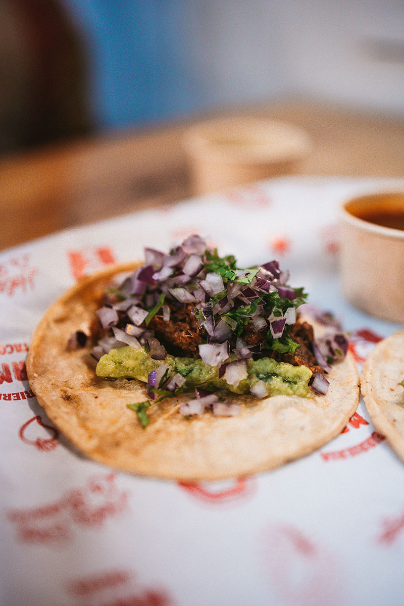 Con el lema “Soy taco y caldo a la vez”, Mami Tacos ofrece una experiencia culinaria única. La carne tiernísima, impregnada con el sabor del jugo, se presenta en opciones tan variadas como tacos, quesadillas, quesabirria, ramen o incluso pizza. La carta incluye siempre una opción de taco vegano, y cada semana sorprende con creaciones fuera de carta, como la reciente tinga de pollo con crema de limón y mole rojo. Un reducido surtido de bebidas pero entre las que no debes dejar de probar la Mezcalita. (una margarita con corazón de mezcal)