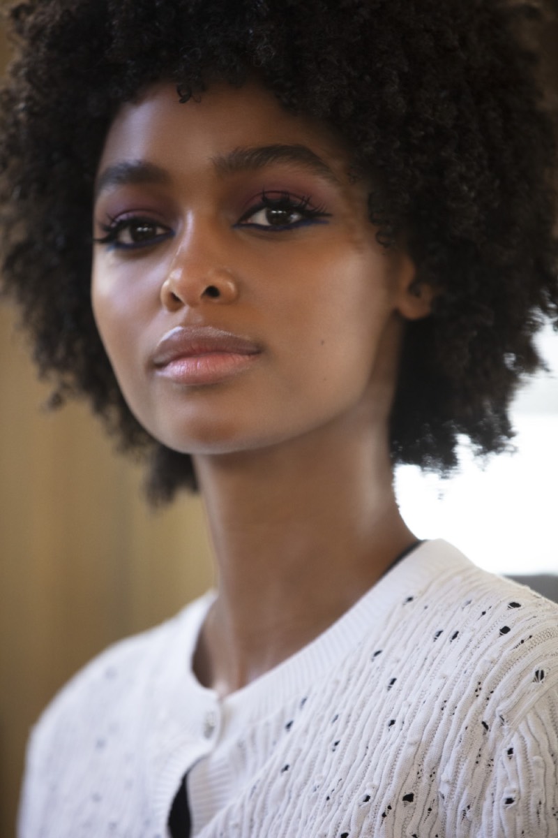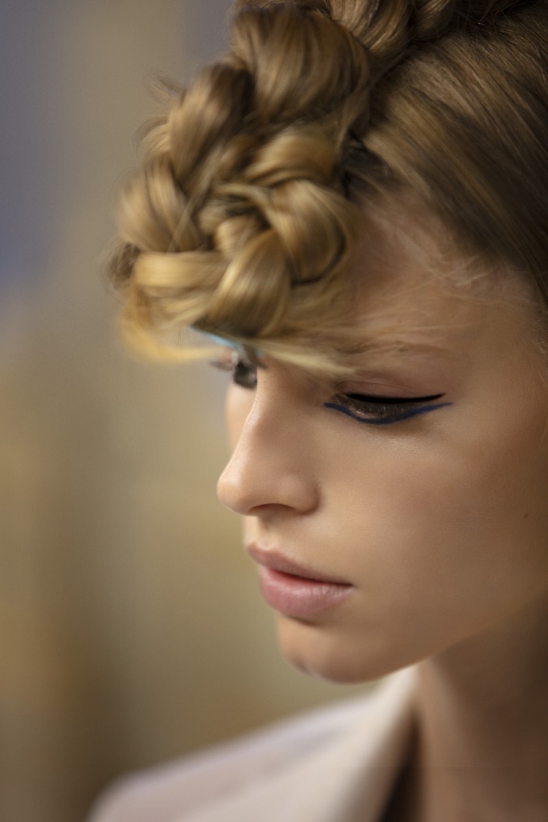 Los labios lucen minimalistas en tonos muy sutiles con la línea Rouge Ccoco Bloom o cubiertos por algo de brillo gracias al bálsamo Rouge Coco, la piel se aprecia uniforme cubierta por Ultra le Teint, un maquillaje de larga duración de acabado natural. Los párpados quedan bañados por tonos oscuros en una paleta que va desde grises hasta verdes, pasando por los rosas pastel. El Eye liner de este maquillaje de alta costura no se difumina como en muchas ocasiones, sino que se deja totalmente marcado para dar paso a una mirada transgresora y atrevida. Finalmente, las cejas se peinan hacia arriba y se rellenan con el fin de que queden algo más gruesas, respondiendo al trend de cejas pobladas al que llevamos asistiendo ya unos años. El resultado es un maquillaje de alta costura que acompaña de lujo a una colección que trata de dar una nueva visión de la mujer parisina.