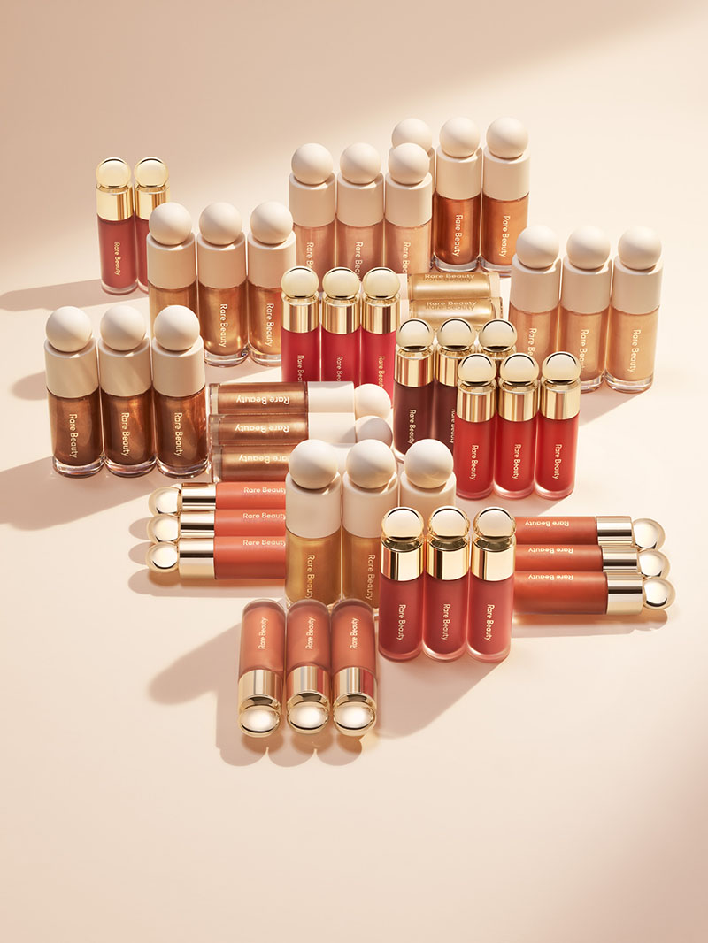 Para los ojos, Rare Beauty propone cinco sombras líquidas waterproof. Destaca su iluminador líquido, en nada menos que ocho tonos, y dos tipos de colorete: uno líquido y otro en crema, en 8 y 5 tonos respectivamente.