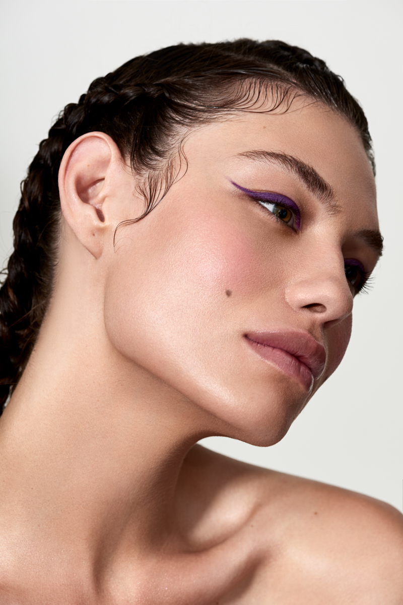 Este último look es atrevido y sencillo a la vez. Sólo basta con cambiar nuestro eyeliner negro por un tono morado que va a ser el protagonista de ese maquillaje de verano. Los labios hidratados y un toque ligero de colorete en crema para dar un aire saludable a nuestro look.