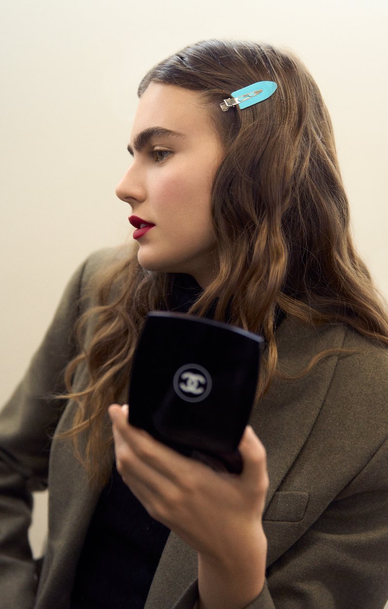 Por último, para conseguir el maquillaje del desfile de Chanel, solo debes elevar tus pestañas con la máscara Le Recourbe Cils y aplicar el tono más claro de la icónica paleta de sombras Jeux de Lumières en el centro del párpado.