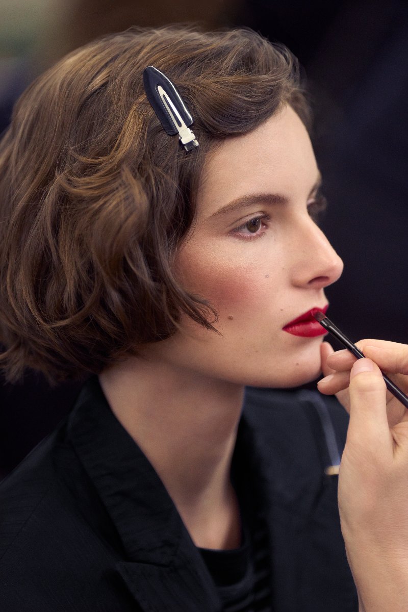 El maquillaje del desfile de Chanel (aún sin Matthieu Blazy) es la mejor definición de belleza atemporal y minimalista. Siempre llevarás una piel luminosa y unos labios rojos muy parisinos.