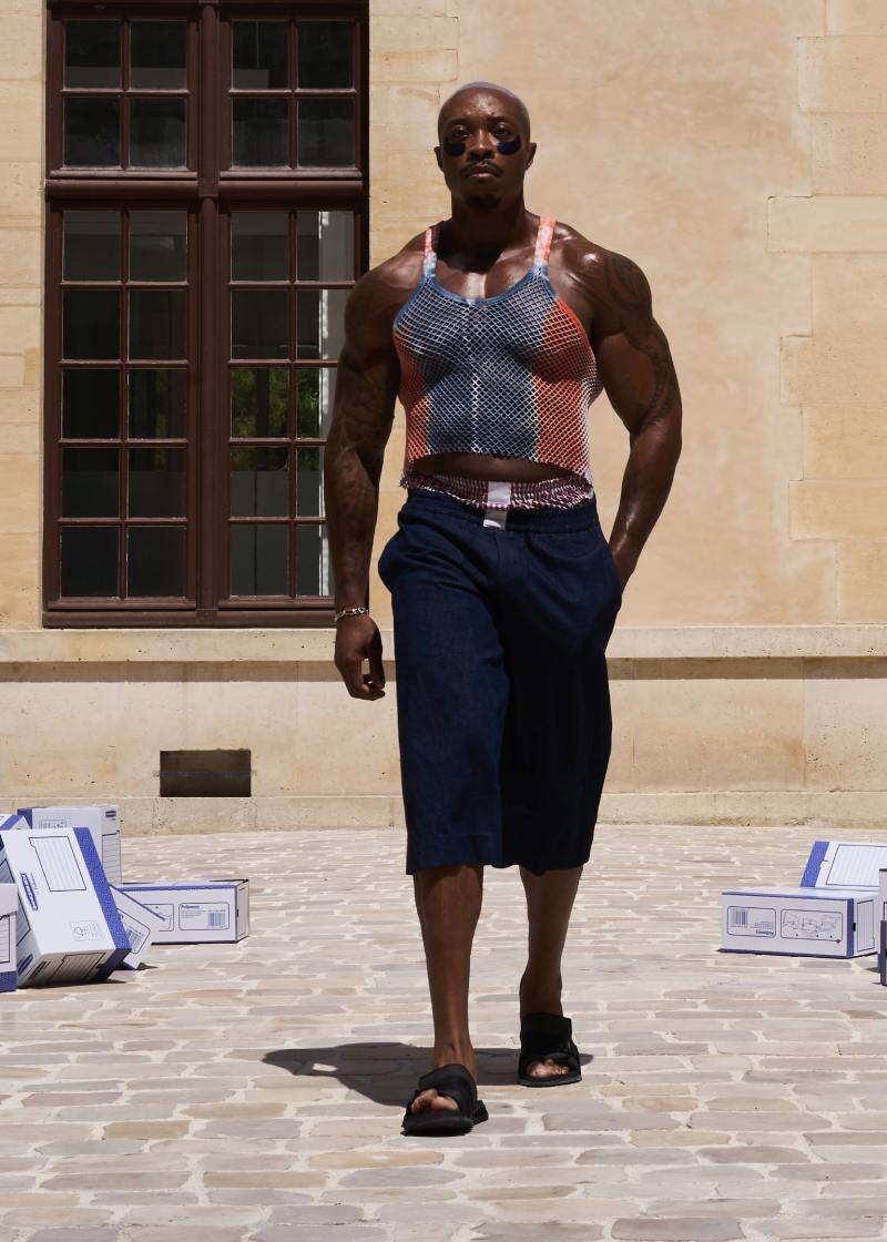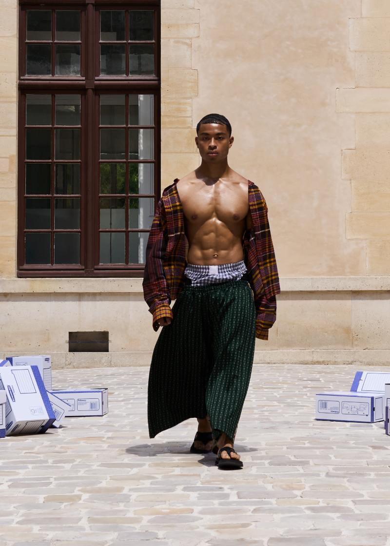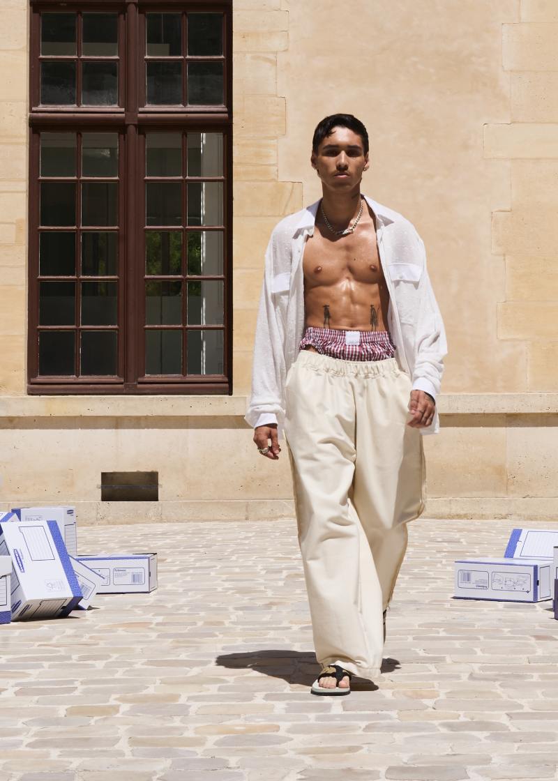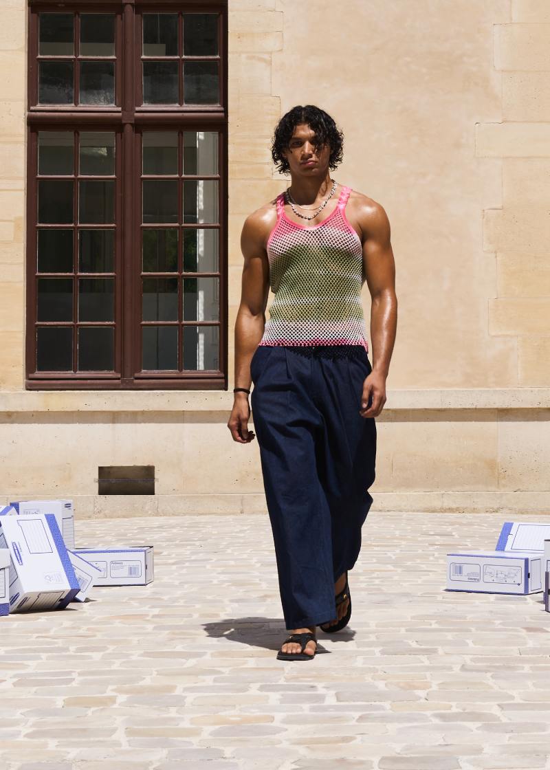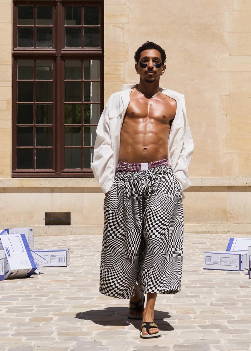 En cuanto a los pantalones, Creole ss26 destaca partes de abajo exageradamente baggy; que dejan ver bóxers a cuadros bajo abdómenes descubiertos. También tenemos bermudas de corte jort; ideales para jugar con la silueta caribeña y speedos minúsculos para los días de playa.
