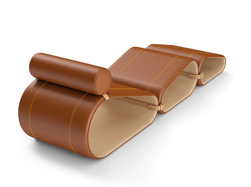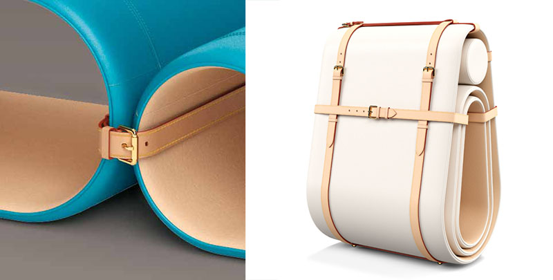 En Lounge Chair cada módulo está fabricado en fibra de carbono de alta tecnología para ser ligero y resistente. Un sitema de correas permite el embalaje y desmbale de esta pieza. Los módulos están tapizados en cuero de alta calidad. Lounge Chair está disponible en dos versiones: Una en clásico tono Louis Vuitton; el otro en lo Wanders llama “Ocean Drive , un cuero de color turquesa que rinde homenaje a la herencia arquitectónica de Miami .
