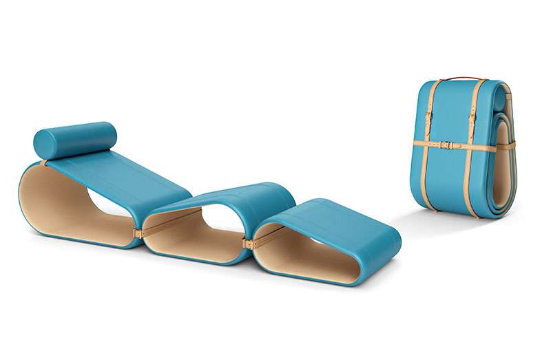 La pieza Lounge Chair es una una chaise longue de fácil transporte creada a partir de tres módulos.