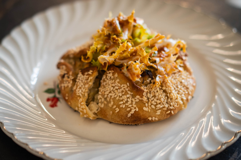 Sorprendentes son también otros entrantes, como la terrina que prepara Jordi. Pato mudo, pollo de pagés, pera y cogollos a la brasa y pepino encurtido. Todo un mundo de sabores de Barcelona a Grecia. Pero sin duda, uno de los platos más demandados son sus pitas, el particular punto fuerte de Stefanos. En carta se encuentra la stefalya (típica de Chipre), que versionan con pan de pita casera. Dentro, yogur, seftaliá de cordero y cerdo, cebolla, tomate y paprika. Esta última es una salsa del norte de Grecia con pimiento rojo, especias y queso feta.