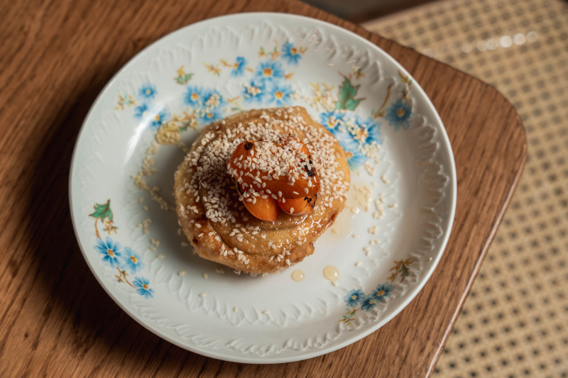 Desde el poso griego, Stefanos pretende establecer una mirada reflexiva al pasado con respeto pero con descaro e innovación. Este paseo por las costas del Mediterráneo comiendo y bebiendo tiene una carta corta y sencilla. Se comienza con una hogaza del vecino Forn Serra de Barcelona por la que más de un cliente les pregunta dónde comprar. Esta marida a la perfección con un queso hecho por el chef con el aceite elaborado por la familia de su pareja en Grecia. De allí provienen también las aceitunas kalamata, que redondean el aperitivo.
