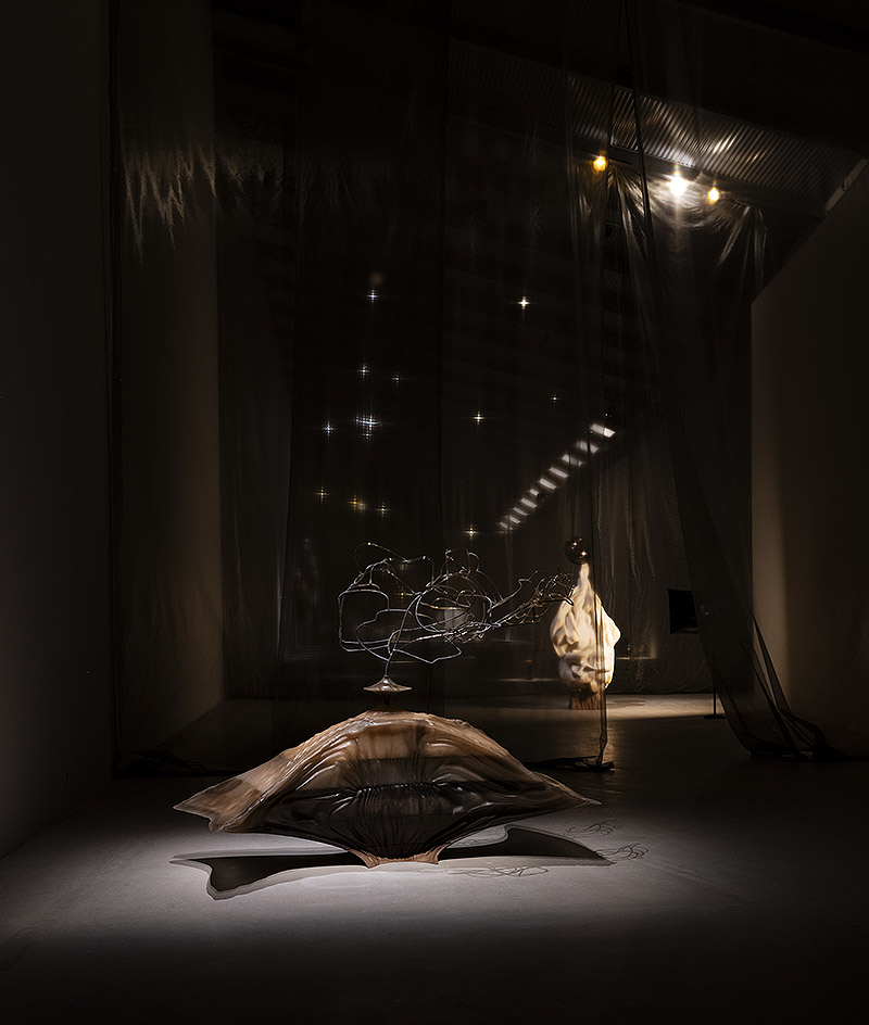 Marguerite Humeau nos acerca a una instalación inmersiva concebida como una ópera visual y sensorial en varios actos, donde esculturas, sonidos y luces dan forma a criaturas y relatos que habitan un mundo posible. La muestra reúne obras nuevas y anteriores, en un viaje especulativo que recorre el tiempo, la materia y las formas de vida.