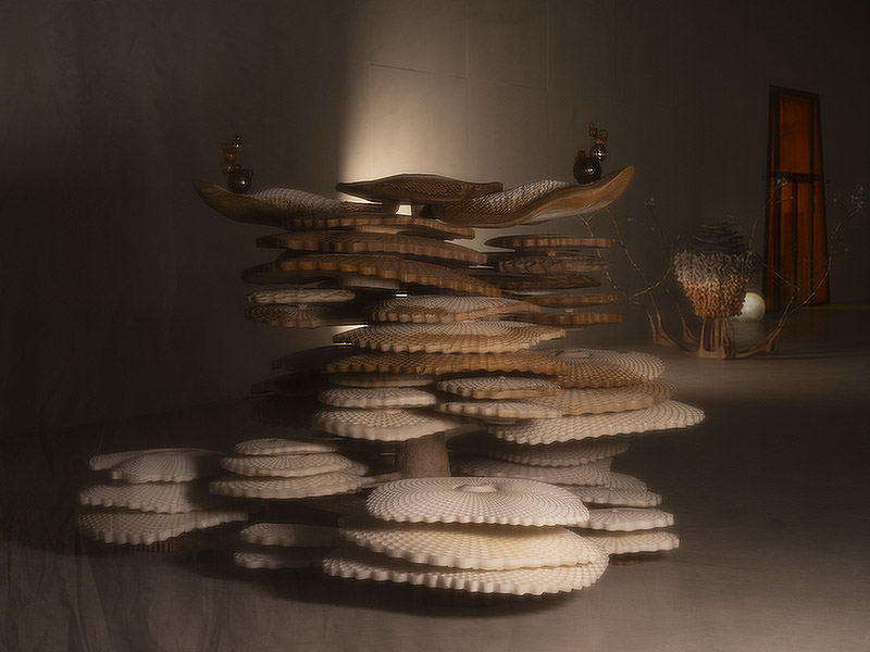 Humeau ha desarrollado una práctica profundamente conectada con la ecología, aunque desde un enfoque no literal. Su trabajo no representa el colapso ambiental, sino que lo reimagina. La artista investiga lo ancestral y lo futurista al mismo tiempo, planteando preguntas sobre cómo podría haber evolucionado la vida si otras especies, como los elefantes o las abejas, hubieran dominado la Tierra. En este ejercicio de imaginación radical, lo que emerge no es una distopía, sino un espacio de posibilidad, un ensayo artístico sobre la vida en coexistencia, más allá del antropocentrismo.
