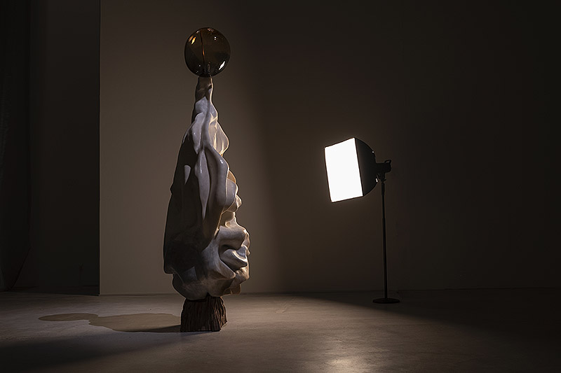 En Torches, Marguerite Humeau compone una ópera visual que se despliega en la sala como un mundo autónomo, donde seres, ecosistemas y objetos dialogan desde una narrativa alternativa. Comisariada por Sarah Fredholm, la exposición utiliza el sonido, la luz y una paleta de materiales poco convencionales —desde cera de abejas y veneno de avispa hasta vidrio soplado o cianobacterias vivas— para activar una experiencia sensorial y simbólica. Cada obra funciona como un acto dentro de un relato mayor: una urdimbre donde pasado, presente y futuro se entrelazan. Torches en una llamada a imaginar formas alternativas de existencia en una Tierra marcada por la crisis ecológica.