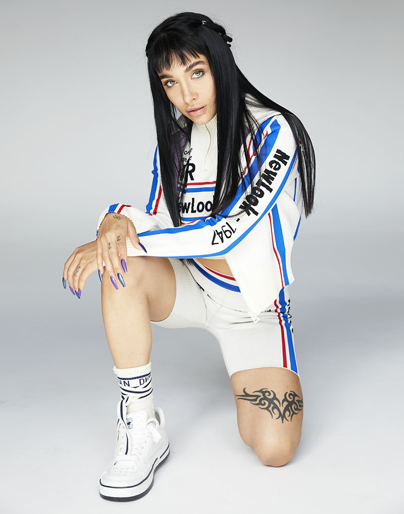 María Becerra lleva total look CHRISTIAN DIOR: Top y chaqueta con cuello subido + Pantalón de ciclista + Sneakers D-Freeway + Calcetines con cordones / Cabello con I.C.O.N. PRODUCTS: India Dry + Protein + Mane Control