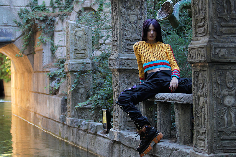 Un vestido deconstruído de inspiración colegial, los monos de punto, los pantalones totalmente desmontables o los de tiro bajo que dejan a la vista ropa interior simulada son algunas de las piezas claves de la nueva colección de María ke Fisherman.