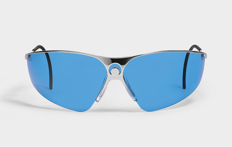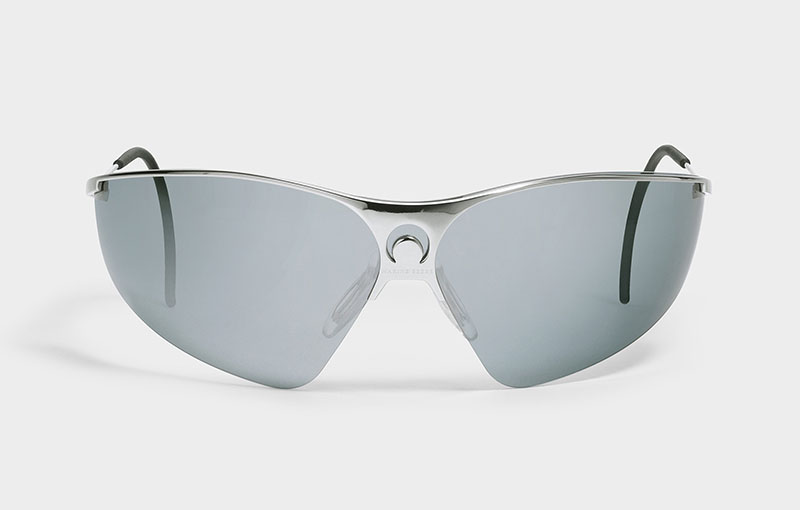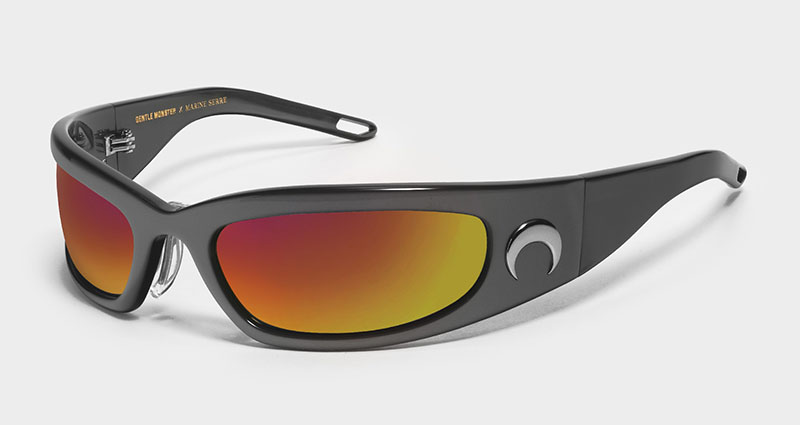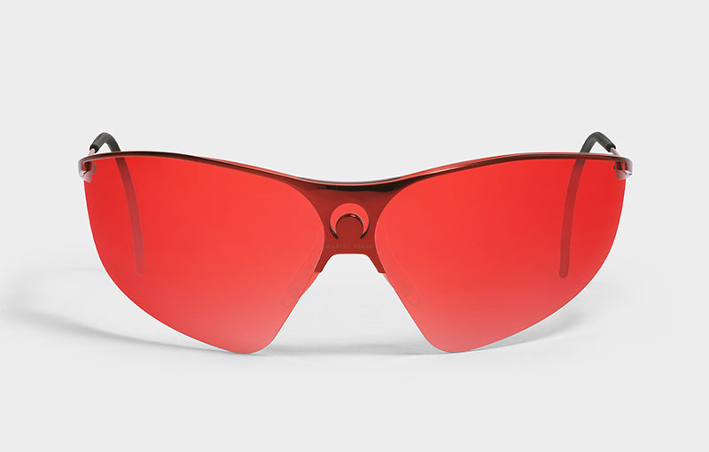 El primer modelo, Visionizer I, Gentle Monster x MS Metal Vistor viene sin marco y con tres variaciones diferentes de color, tanto en la montura como en sus lentes XXL. Los colores en los que se ha reproducido el nuevo modelo, rojo intenso y plateado (con acabado en espejo) y azul cobalto (transparente), combinan a la perfección con una silueta de apariencia aerodinámica a la que se añade el mítico logotipo de la luna de Marine Serre en el centro del frente y las siglas MS en cada extremo de la pieza frontal.