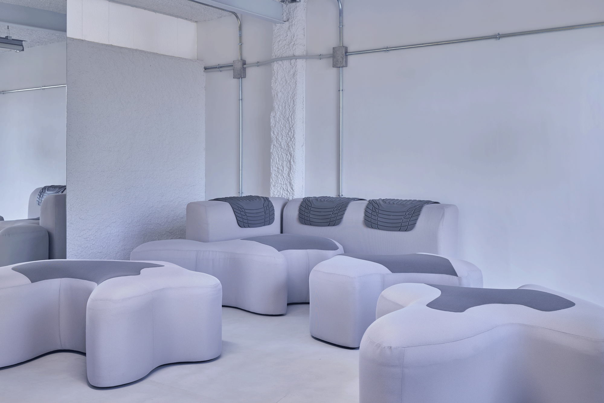 Un suave color lila azulado de tintes metálicos baña la atmósfera de este apartamento, trasportándonos a un escenario de ciencia ficción. Y es que sus interiores bien pudieran formar parte del metaverso y sus muebles ser comercializados como NFTs. “Un laboratorio donde lo real y lo virtual colisionan; una experimentación radical de lo posible. El espacio no solo se habita, se performa”, explica Montesinos. El joven arquitecto, afincado en la ciudad de Valencia, explora a través del diseño de espacios y objetos los límites entre la realidad y la virtualidad, la naturaleza y el artificio, así como la relación del usuario con la tecnología.