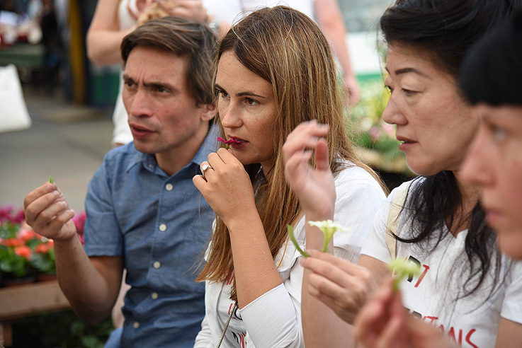 Ahora hay una tendencia hacia la cocina gourmet diseminada a través de la TV y que llega todo tipo de público. Veo que incluye flores y otro tipos de plantas en ensaladas y postres, ¿tu audiencia reacciona positivamente cuando les das a probar flores?
