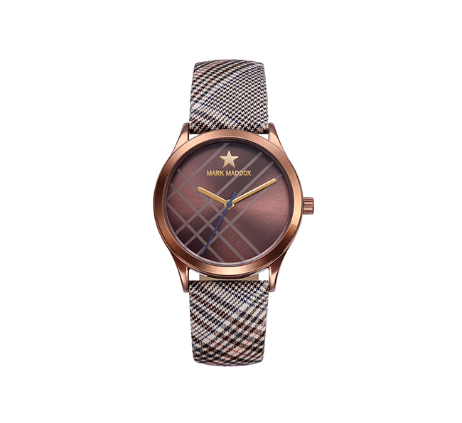 Elementos clásicos de la sastrería tradicional masculina se incorporan a los nuevos diseños de relojes para mujer de Mark Maddox. Así vemos característicos lunares de una corbata, o el efecto de elegantes tejidos príncipe de galés o pata de gallo, en la correa de un reloj. Un juego muy tweed que continua, en algunos casos, en el interior de la propia esfera del reloj, también de corte clásico. Unas propuestas muy Savile Row, muy London…. y con un sentido de la puntualidad muy british.