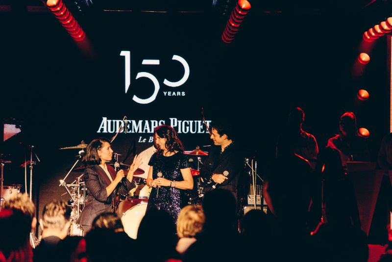 Raye y Mark Ronson cantanto Suzanne por primera vez en el evento de Audemars Piguet por su 150 aniversario. Fotos: cortesía de AP.
