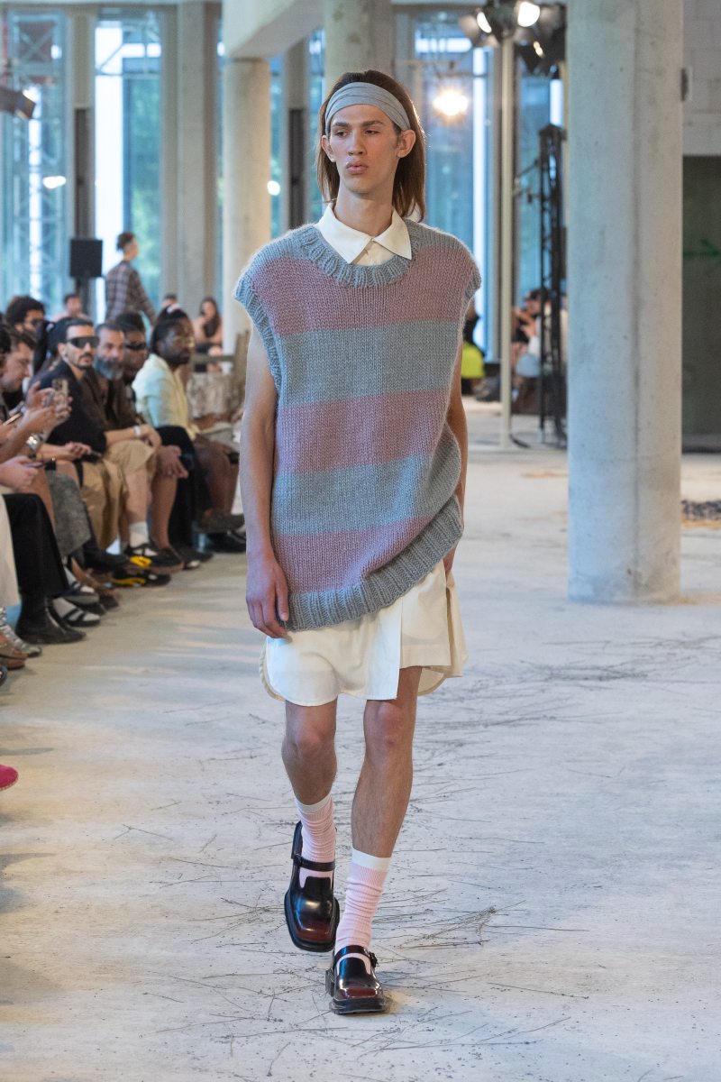 La colección de Marke ss26, “The Summer I Never Had” mezcla realidad y ficción en pro de apaciguar los deseos perdidos de una juventud queer. En las notas de la colección se mencionan periodos donde pertenecer al colectivo era ilegal (y peligroso incluso). La Inglaterra de Eduardo, la Polonia comunista de los 80, el Glasgow de los 90. Allí, la intimidad queer sobrevivía a escondidas; como algo prohibido. Entonces, los amores de verano y la libertad de la temporada eran solo un deseo; de ahí el nombre de la colección.