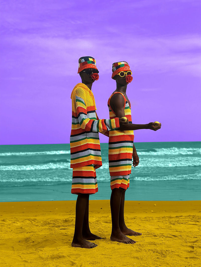 Pero la cosa no solo queda en la ropa. Marni X No Vacancy Inn presenta también complementos icónicos de la firma italiana como los tote, ahora en rafia con logos colaborativos, sombreros de pescador, joyería de estilo DIY, sandalias, viseras. Y si queréis el look de beachwear entero, también se proponen accesorios de playa como toallas y hasta un flotador.