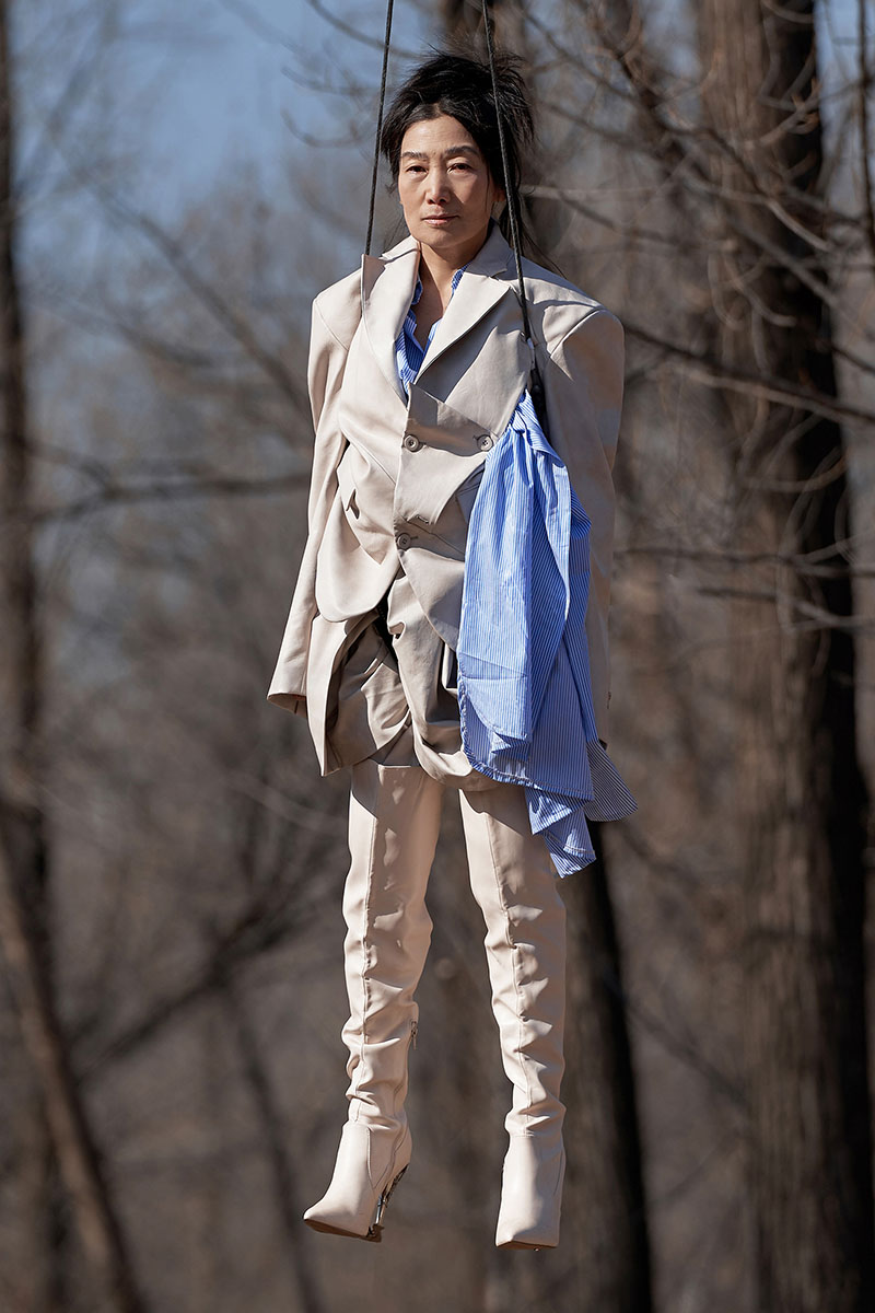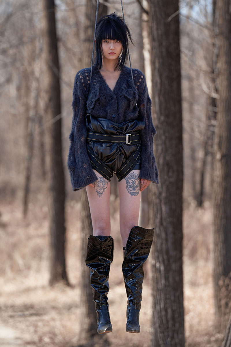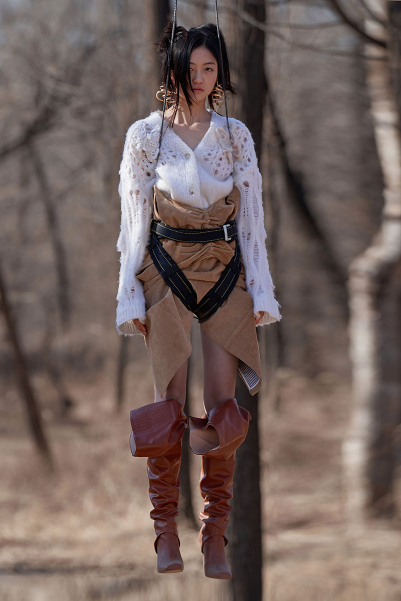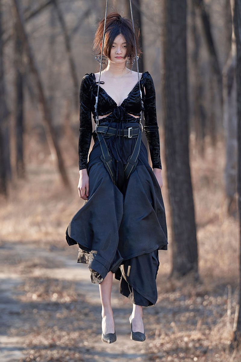 Los diseñadores han presentando Marrknull FW21 en un bosque, concretamente en un camino haciendo la función de pasarela. Los modelos pasaron por ella colgados de unos arneses. El original desfile es un ejemplo más de la gran imaginación de sus creadores que hacen destacar sus looks dentro la naturaleza.