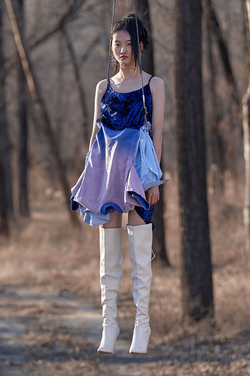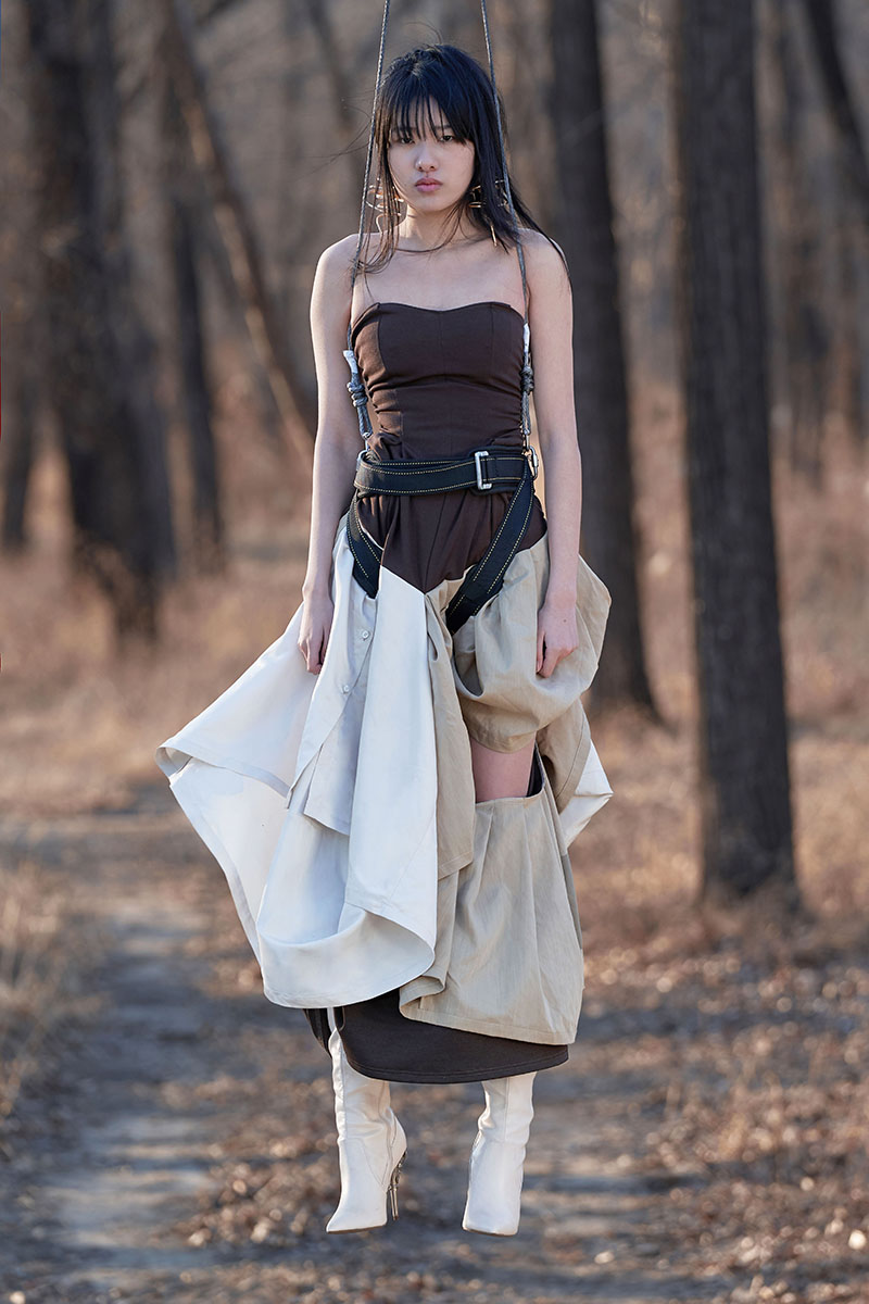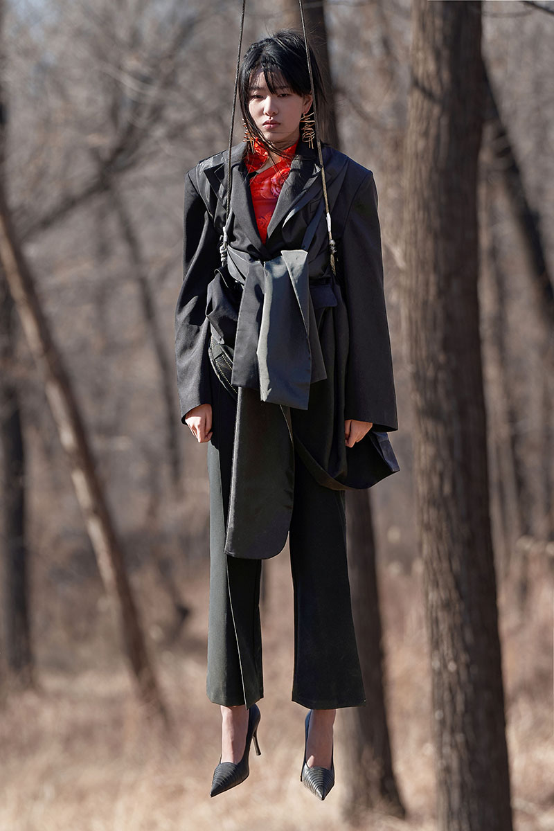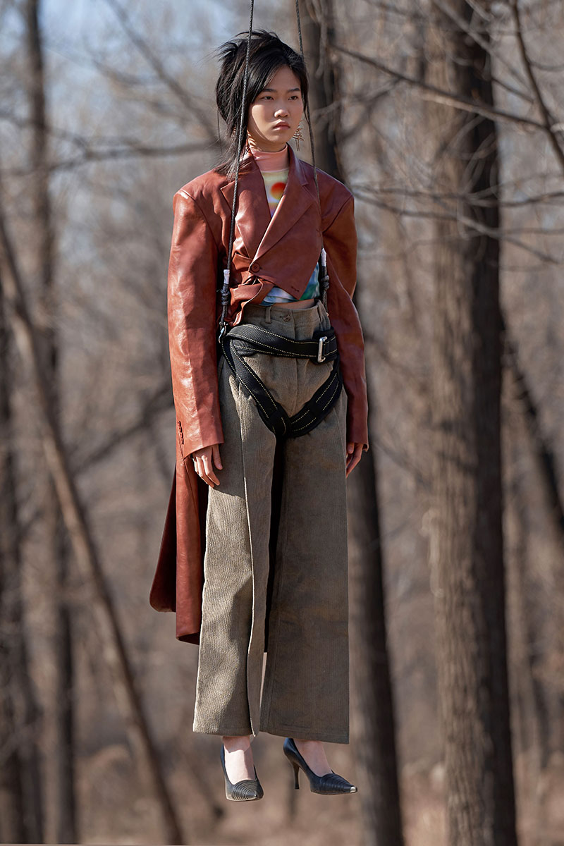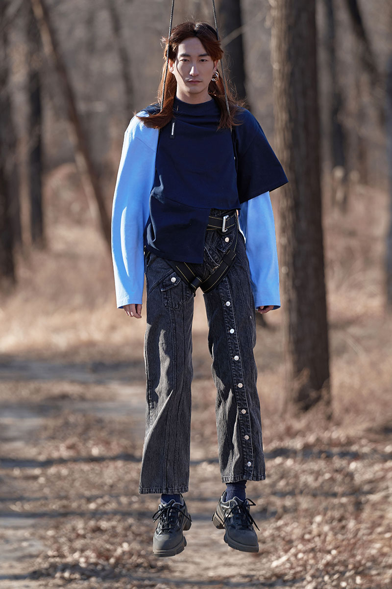 Los diseñadores han presentando Marrknull FW21 en un bosque, concretamente en un camino haciendo la función de pasarela. Los modelos pasaron por ella colgados de unos arneses. El original desfile es un ejemplo más de la gran imaginación de sus creadores que hacen destacar sus looks dentro la naturaleza.