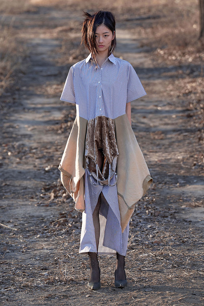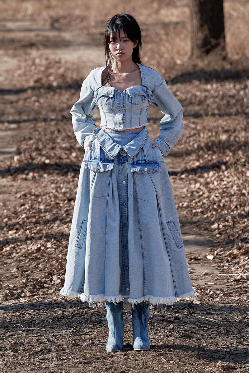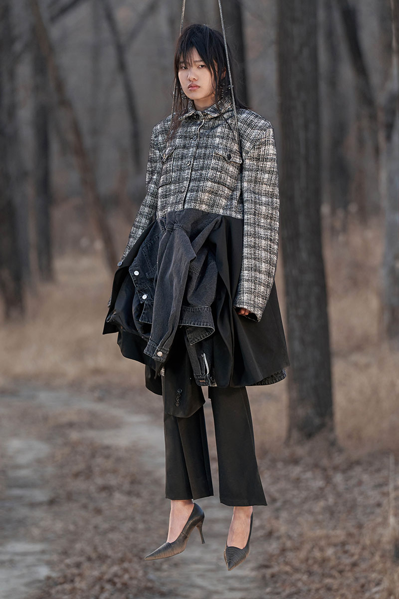 Cuando miras los looks de la colección al principio ves un impresionante y original conjunto aparentemente normal, pero al fijarte en las prendas por separado compruebas que han transformado la estructura original de cada prenda por completo. Las faldas son americanas o chaquetas vaqueras, de los abrigos nacen otros abrigos e incluso el calzado y los complementos no son lo que parecen. La paleta de colores es sobria y emplean tonos llamativos en muy pocas prendas, siendo los tonos más utilizados el negro, el blanco y azul propio del denim.