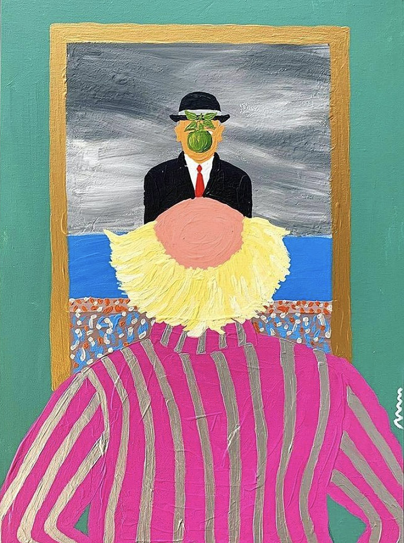 Ella ha siempre ha pintado desde que era pequeña , pero no fue hasta el confinamiento de 2020 cuando Marta Morientes tuvo la oportunidad -y la obligación- de parar, pensar, aburrirse y volver a conectar con ella misma. Fue así como encontró el estilo único de sus cuadros; naive, muy colorido y con un toque humorístico.