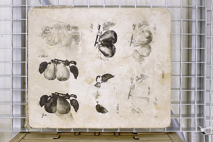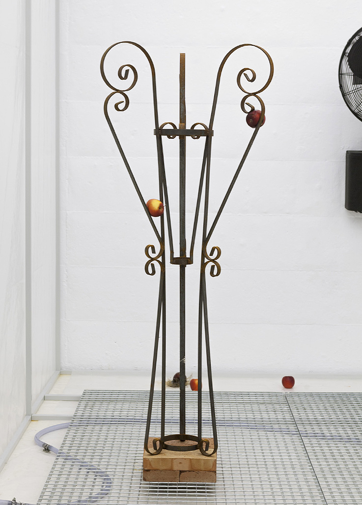 Lo contrario de aquel “Fruit Belt” con el que Martín Llavaneras titulaba su última exposición en el Espai 13 de la Fundació Miró y que se refiere a regiones con un microclima ideal que permiten una optimización del proceso agrícola, pensé. Se trata siempre de ese intento de domesticación de la naturaleza del que ya hablaba Heidegger. Sí, siempre he sido demasiado pomposo. Ha dejado un poco de lado los cuerpos y sus efectos, los rastros humanos en los objetos y los materiales -los patrones gráficos de sus piedras litográficas o la dimensión ortopédica de sus perfiles escultóricos de caucho- para centrase más en contextos naturales; frutos, hierbas, plantas. Sus últimas muestras son casi ecosistemas autónomos, instalaciones vivas y cíclicas, pensé también, y ¿cómo integras eso en una galería?