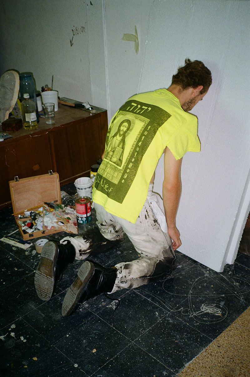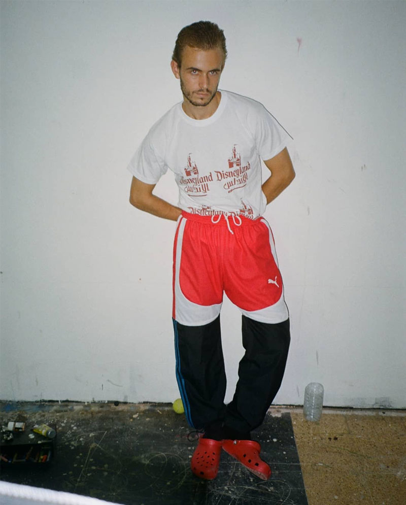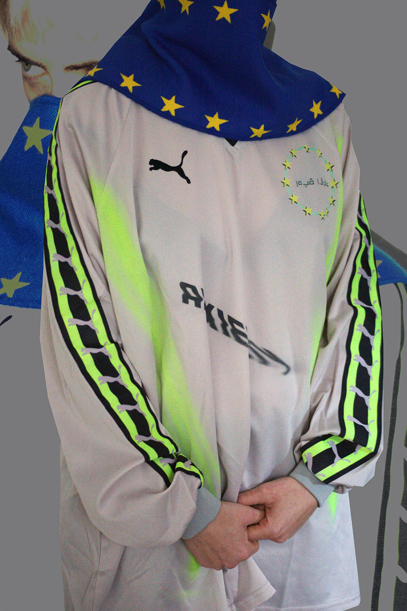 ¿Cuál es la prenda más especial de todas las que ha creado Mary Garlic? Anxiety football tee, para mi es súper especial. Encontré el lote de esas camisetas en una tienda de barrio dedicada al deporte de los años 90 y los 2000. Ese año fue el de la obsesión por la ropa de fútbol y su estética, durante varios meses me dediqué a ir todos los días a grabar en video escenas de un campo de fútbol cercano a mi casa. Compraba compulsivamente camisetas de fútbol, luego las revendía y sólo me quedaba con las que eran de equipos árabes u orientales. Así empecé a construir en mi cabeza una historia y escribí una película. En esa película todos los personajes se relacionaban entre sí por haber tenido experiencias traumáticas, de ahí lo de “anxiety” y pertenecían a un equipo de fútbol de una Europa árabe distópica y esa camiseta era parte de su equipación.