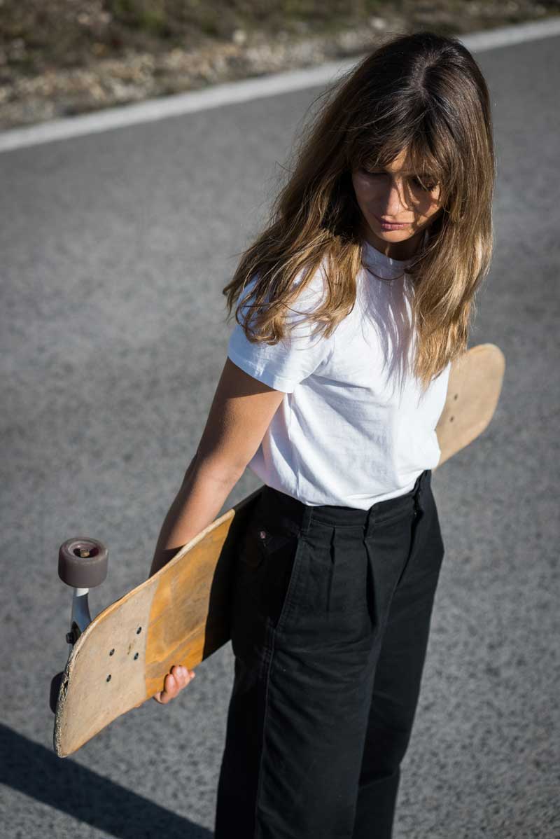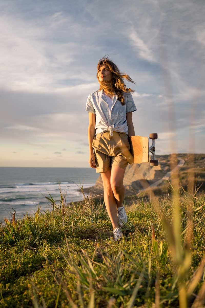 Valeriya Gogunskaya es otra alma libre. Sus alas, o más bien su tablas, la de longboard y la de surf, la llevaron hasta la playa portuguesa de Santa Cruz, donde se enamoró y decidió echar ruedas para crear una comunidad de longboard dance freestyle (es decir, deslizarse bailando sobre una larga tabla de skate). En su Instagram puedes ver sus coreografías sobre la tabla mientras se desliza por un idílico paseo marítimo a modo de pasarela donde la skater luce sus casual looks de Dockers.