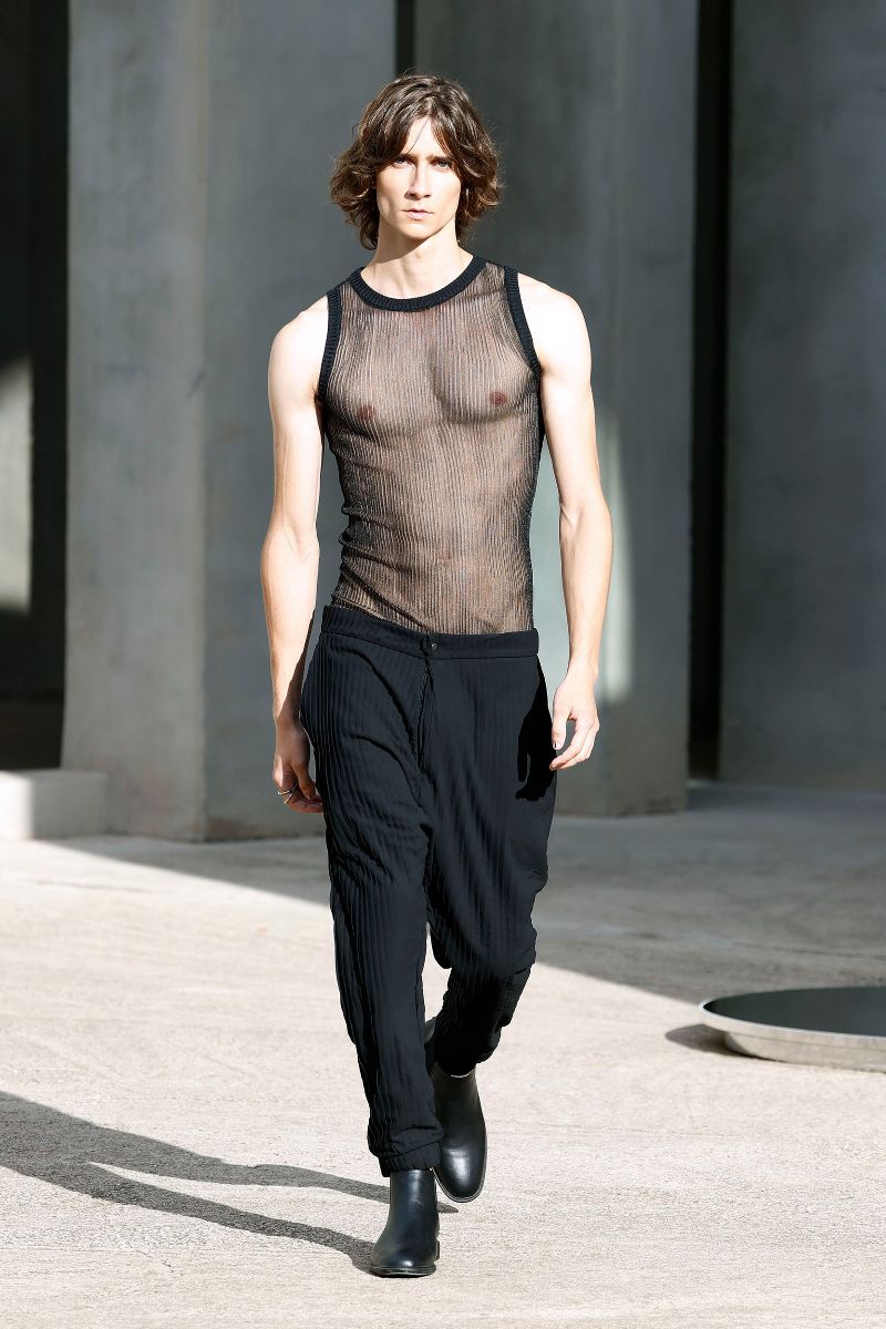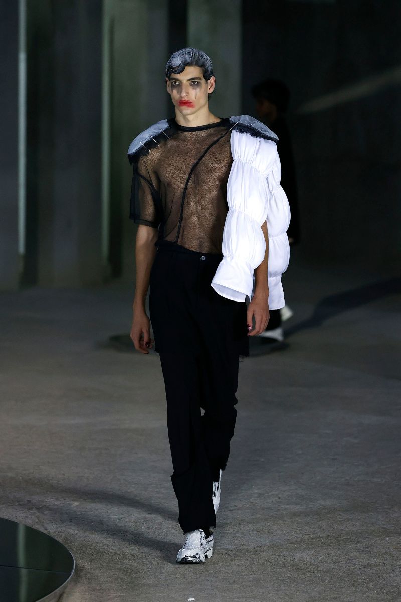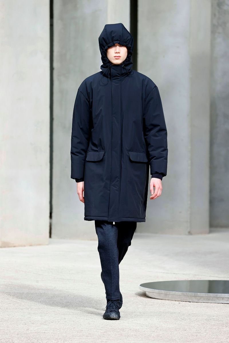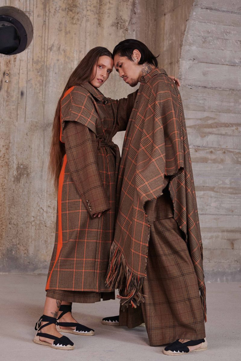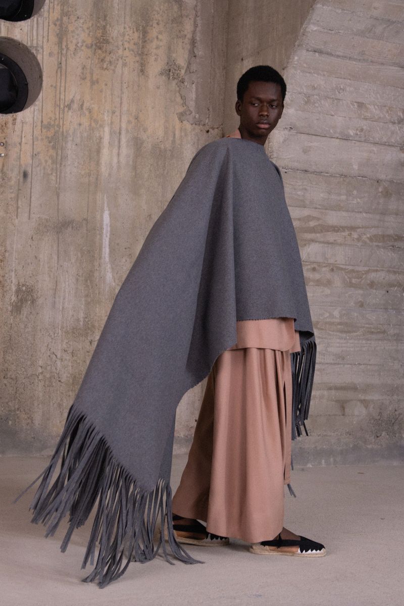 Eñaut presentó Bost inspirado en los conjuntos de rocas y la evolución que desarrollan a lo largo de la historia. Lo más llamativo de esta línea han sido los colores usados: negro, gris y blanco. Todos los tonos se complementan entre si, para crear la sensación de dureza de una roca y sus materiales. Por cierto, Eñaut usó poliéster reciclado, lana regenerada, piel vegana, tricot y elementos orgánicos.