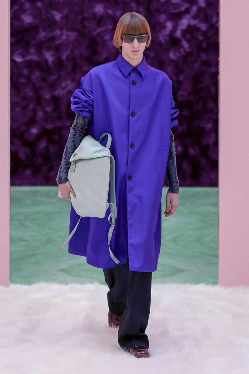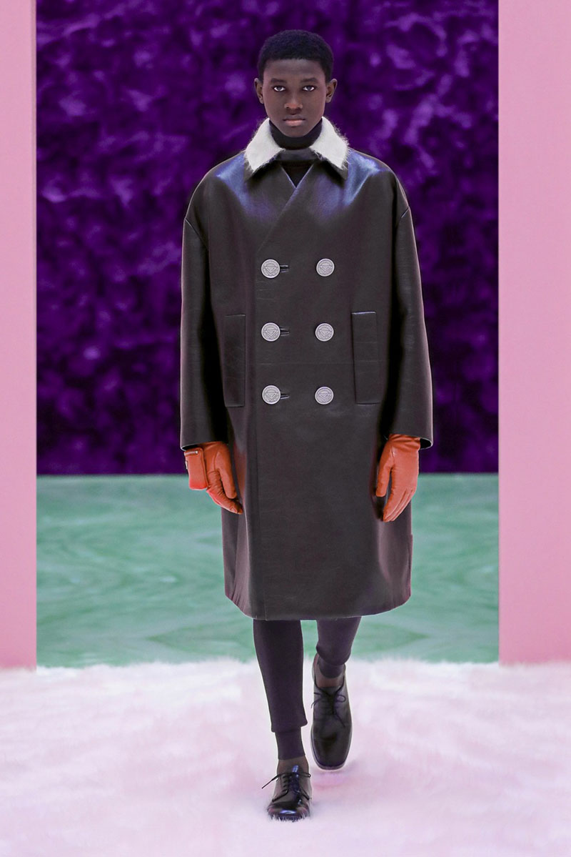 Prada FW21 Menswear “Possible Feelings” se convirtió en la primera colección masculina fruto de la unión de Raf Simons y Miuccia Prada. La colección se presentó a través de un desfile virtual en forma de cortometraje al que le siguió una sesión de preguntas y respuestas en vivo desde la sede de Prada en Milán. El show fue un auténtico espectáculo lleno de contrastes, formas y colores. Desde abrigos oversize de estilo marinero con botones XXL a trajes ajustados con estampados.