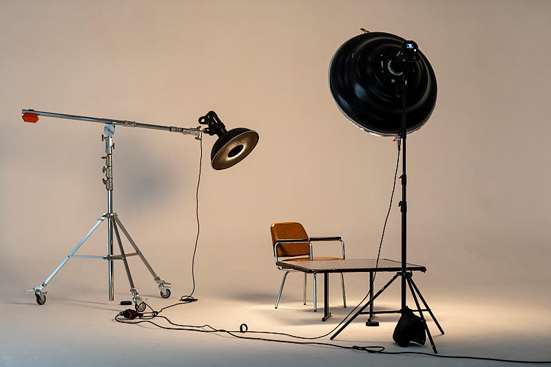 Kit de iluminación para sesión de fotos en uno de los estudios de fotografía y rodaje de Top Studios en Barcelona