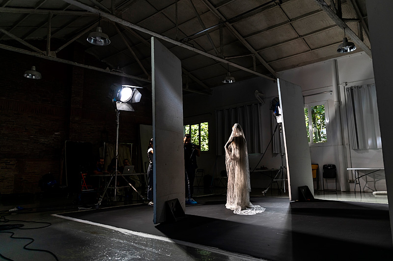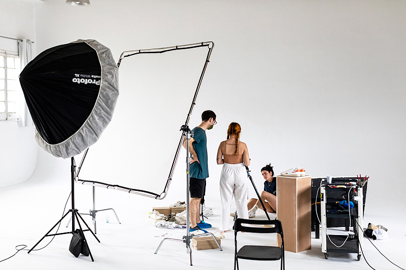 Producción fotográfica en uno de los platós de fotografía y rodaje de Top Studios en Barcelona