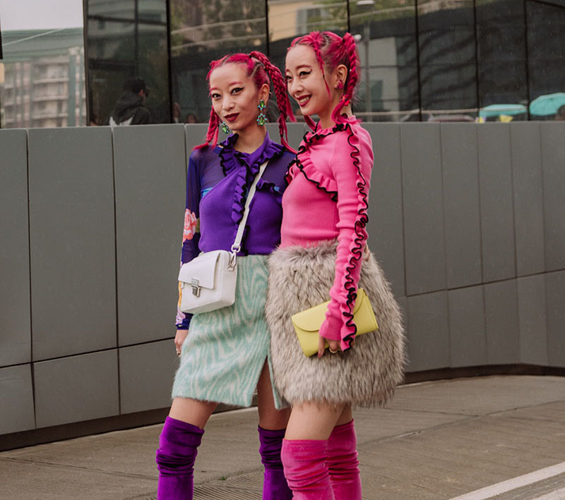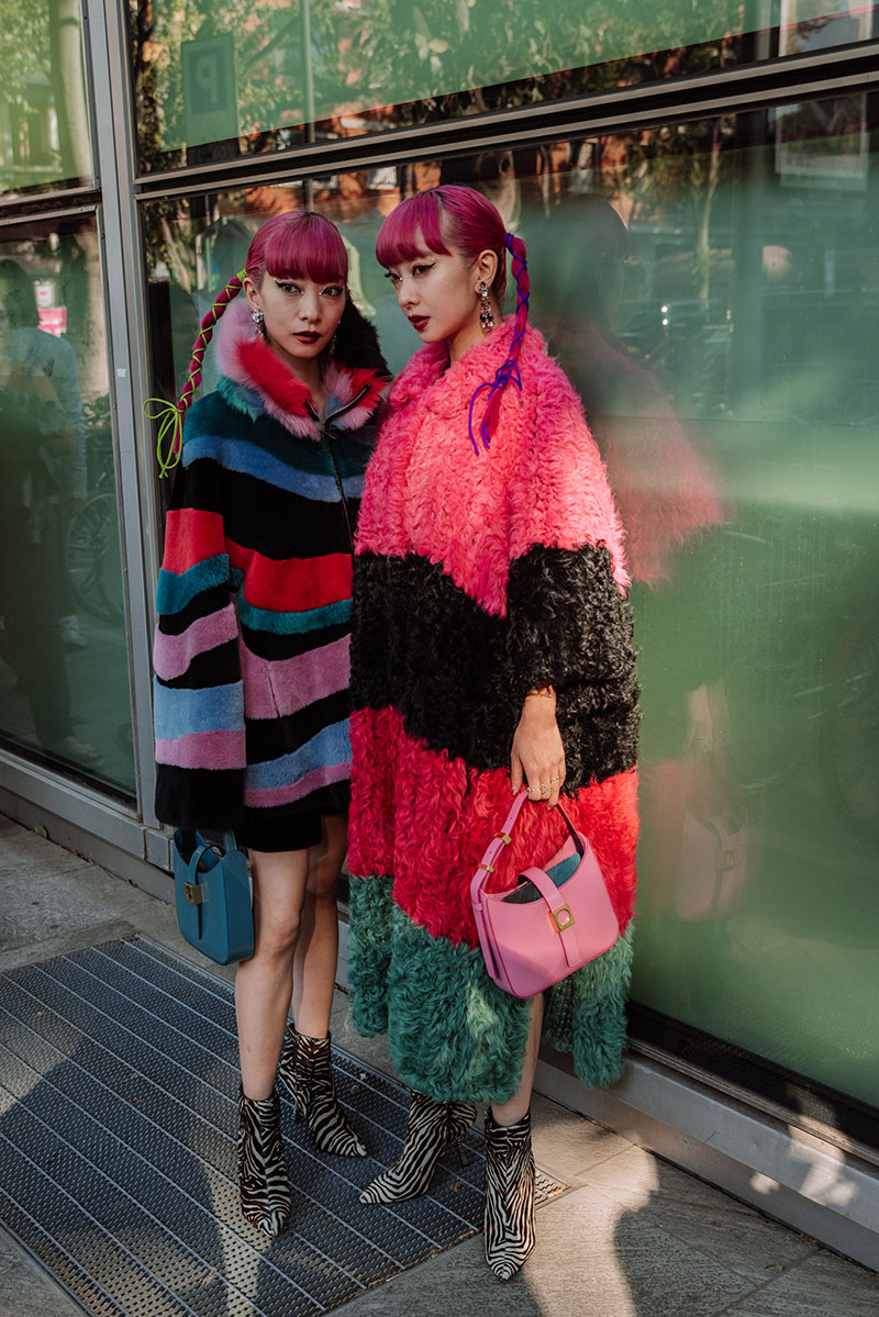 Entre las instantáneas que Illas nos manda directamente desde Milano, podemos reconocer a algunas personalidades de la escena internacional y también nacional como las gemelas Ami y Aya, Dulceida o Madame de Rosa.