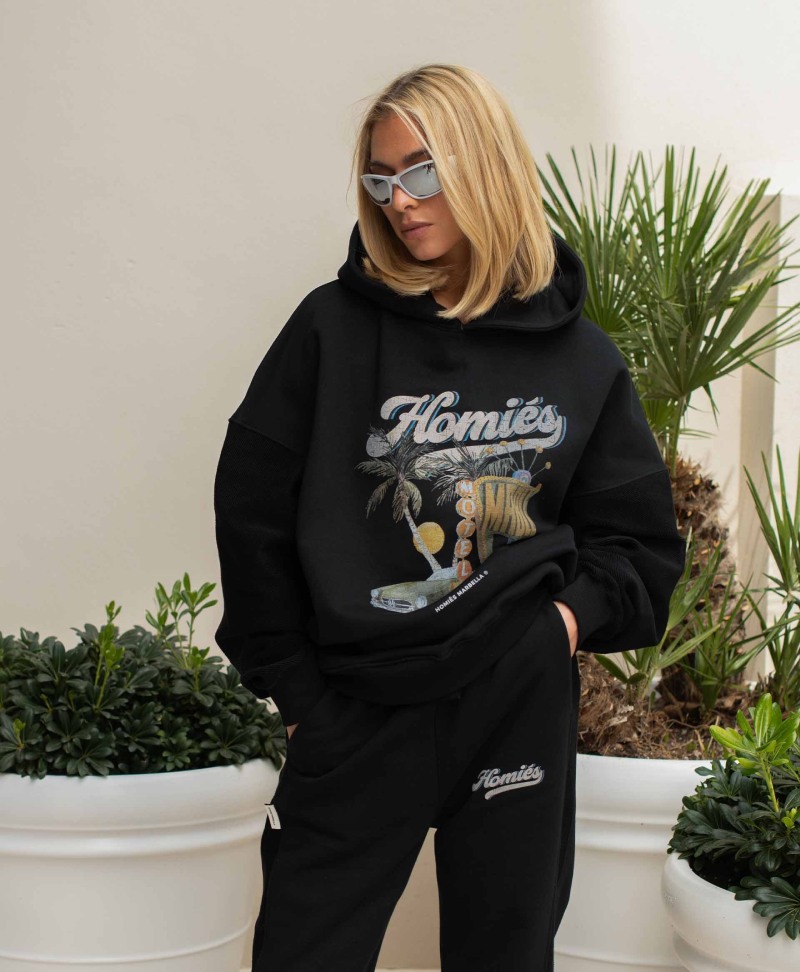 Lo de Homiés Marbella es un caso de estudio. Esta firma de moda urbana luxe es el brainchild de JM Fernández e Itziar Fuentes y lleva construyendo una identidad súper fuerte desde su fundación en 2014. Todo comenzó en el garaje de la madre de JM, cuando ambos se pusieron a hacer camisetas para venderlas entre sus amigos. Y, como pasa cuando una marca local se hace conocida, lo comenzaron a petar.