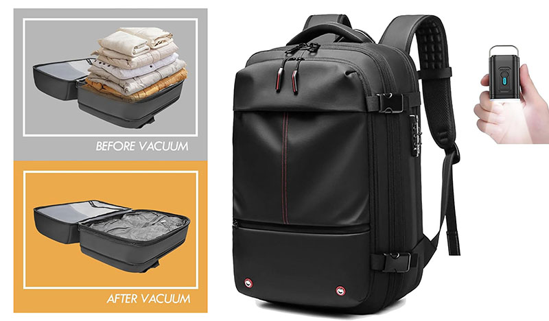 ¿Conoces a esa persona que viaja ligero pero, misteriosamente, siempre lleva de todo? Esta mochila con compresión al vacío está destinada a convertirse en su próxima obsesión. Compacta por fuera -solo 12 × 7,8 × 20 pulgadas– pero capaz de ampliar su capacidad hasta 60 litros, equivale a una maleta de 24 pulgadas sin necesidad de facturar. Gracias a su sistema de compresión con válvula unidireccional (manual o con bomba eléctrica), permite reducir el volumen de equipaje al mínimo.