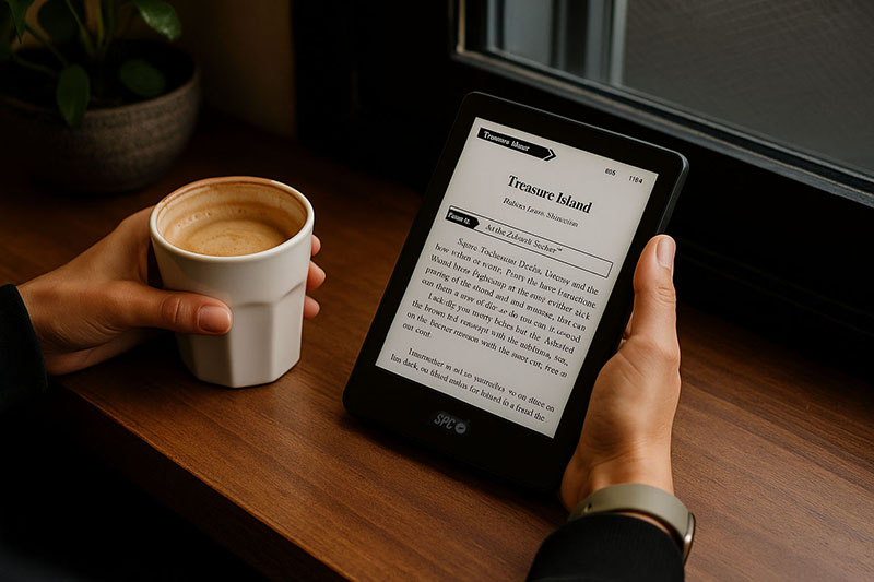 Concluimos con el regalo tecnológico perfecto para quienes devoran páginas, ya sea en la playa, en un tren o porque su estantería ya no admite ni un lomo más. El SPC Dickens Light 2 Pro es un lector electrónico compacto, con pantalla táctil giratoria y antirreflejos, luz ajustable tanto en brillo como en temperatura de color y una memoria interna de 8 GB, suficiente para almacenar nada menos que 8.000 libros.