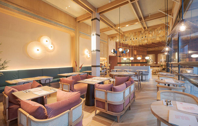 Con una decoración alejada de la que durante años se ha identificado a los restaurantes de comida china, el gris de sus suelos y paredes contrasta con el colorido de sus platos.