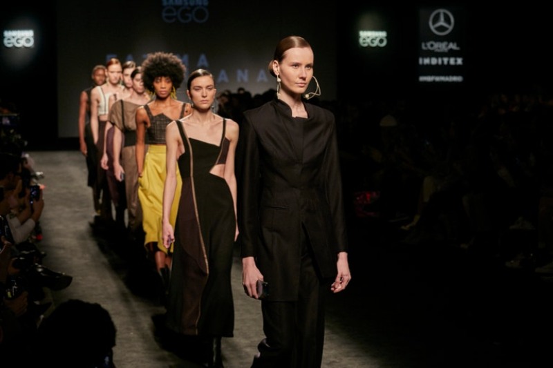 Arriba: Imagen del desfile de Fátima Miñana @fatima.minana en Ego dentro de Mercedes-Benz Fashion Week Madrid