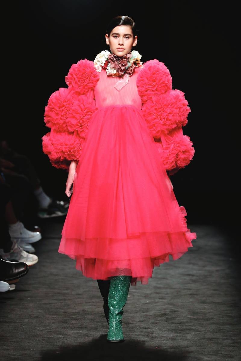 Arriba: Imagen del desfile de Fátima Miñana en la pasarela joven de la Mercedes-Benz Fashion Week Madrid