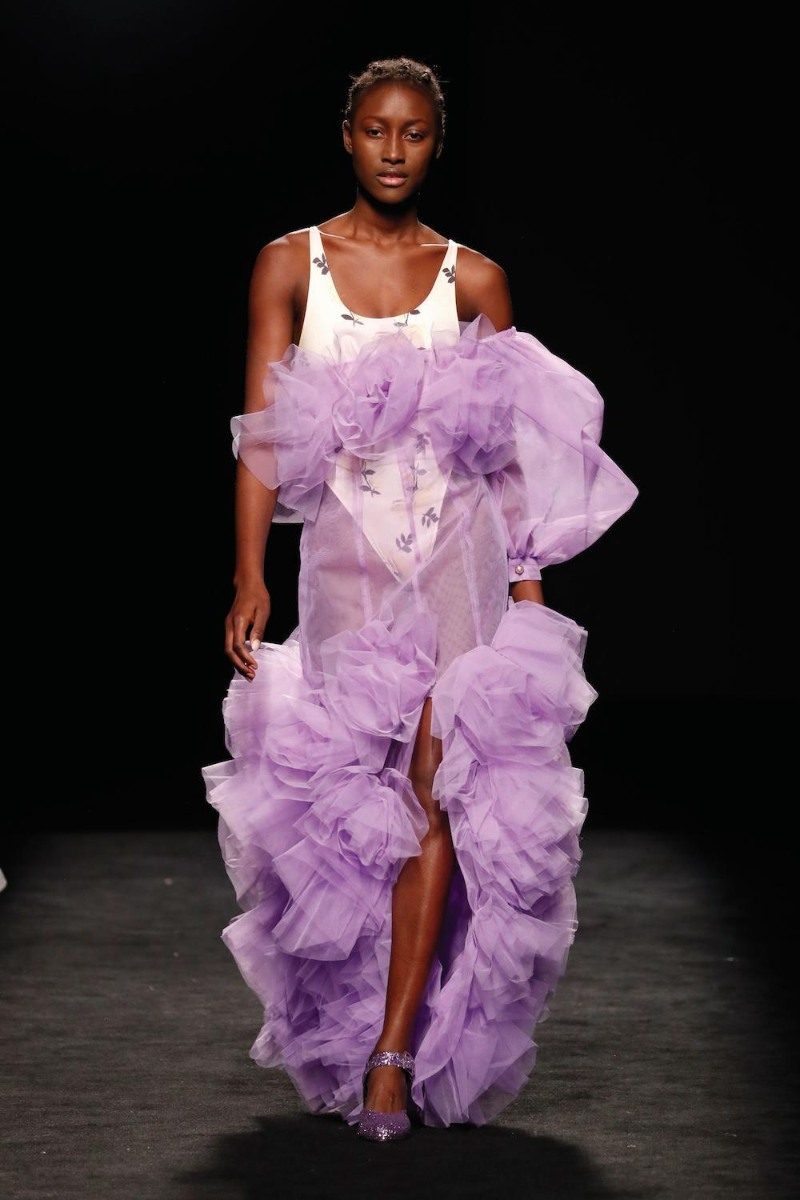 Arriba: Imagen del desfile de Rubearth @rubearth ganador del Mercedes-Benz Fashion Talent.