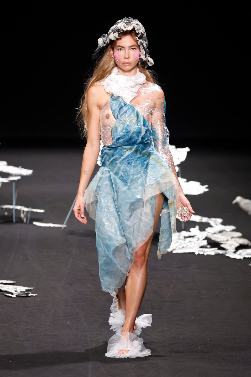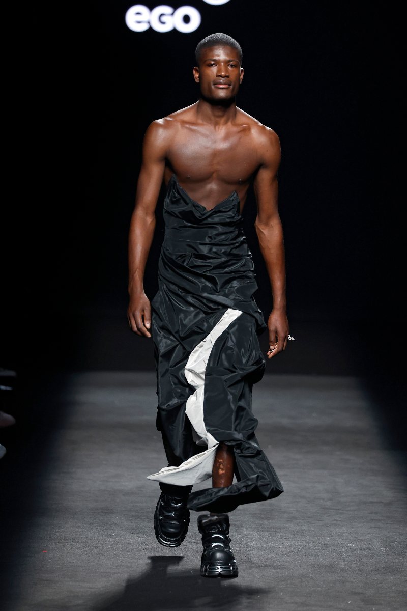 Posteriormente fue Oriol Clavell. Cuyo origen está en Londres y Barcelona, el diseñador presentó su colección debut cargada de referencias a la estética queer y la destrucción de las normas normativas de la industria mediante la utilización de la impresora 3D, la artesanía y el patronaje creativo. Esto último fue lo más impactante. En otras palabras, conseguir que el pasado, presente y futuro tengan un mismo diseño. Claro está que se dio una clase de sostenibilidad y diversidad real.