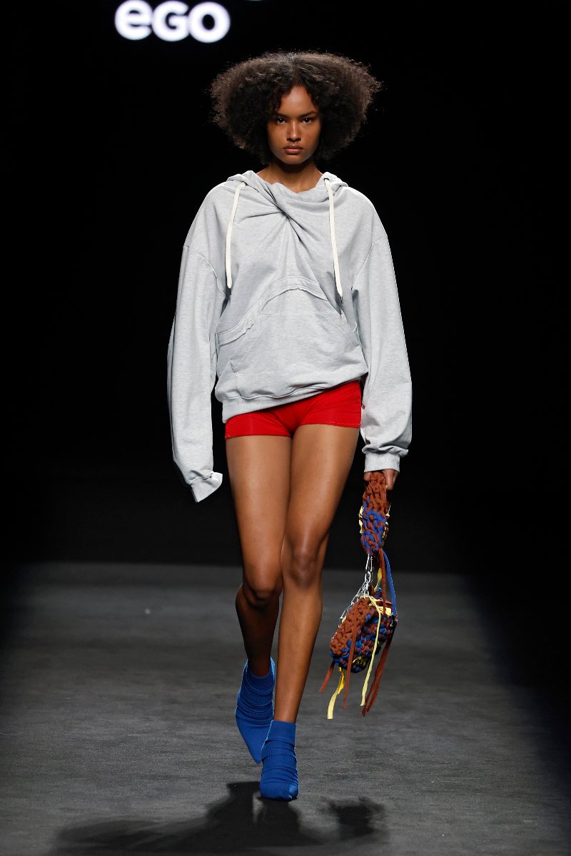 Seguidamente de Evade Hosuse desfiló Anystudio. Dos diseñadores que formaron su marca en 2020 en Barcelona con una meta: eliminar normas de género, de estilismo o convenciones sociales. Mediante la combinación de tejidos como el algodón o las lanas recicladas han reflejado una liberación en todos los sentidos. Te aseguramos que no será la última vez que veas a Anystudio, tanto por la división de los looks entre ambos géneros o la introducción de fotografías como estampados.