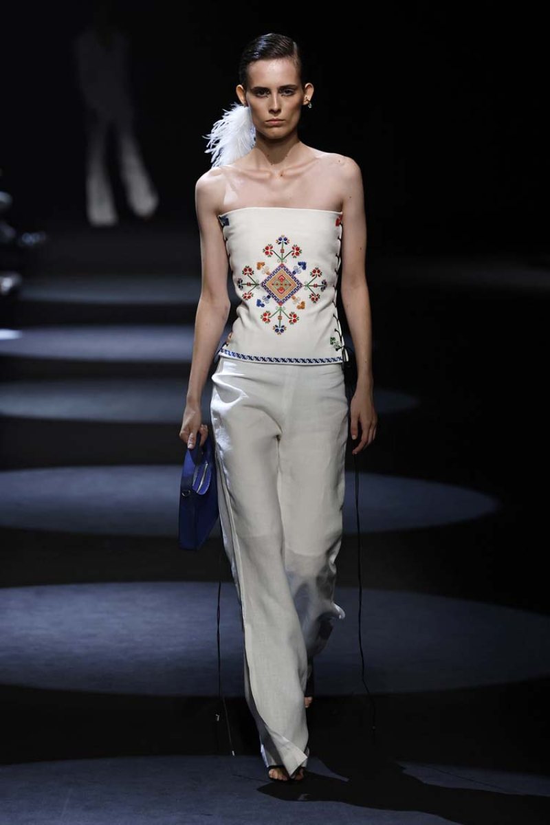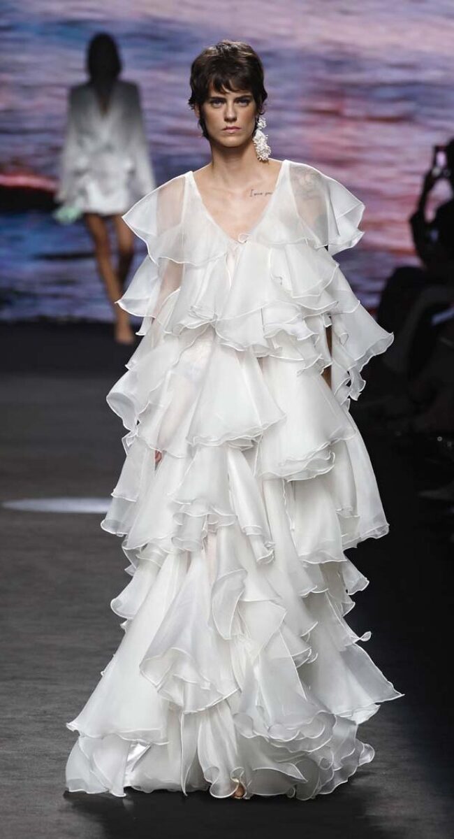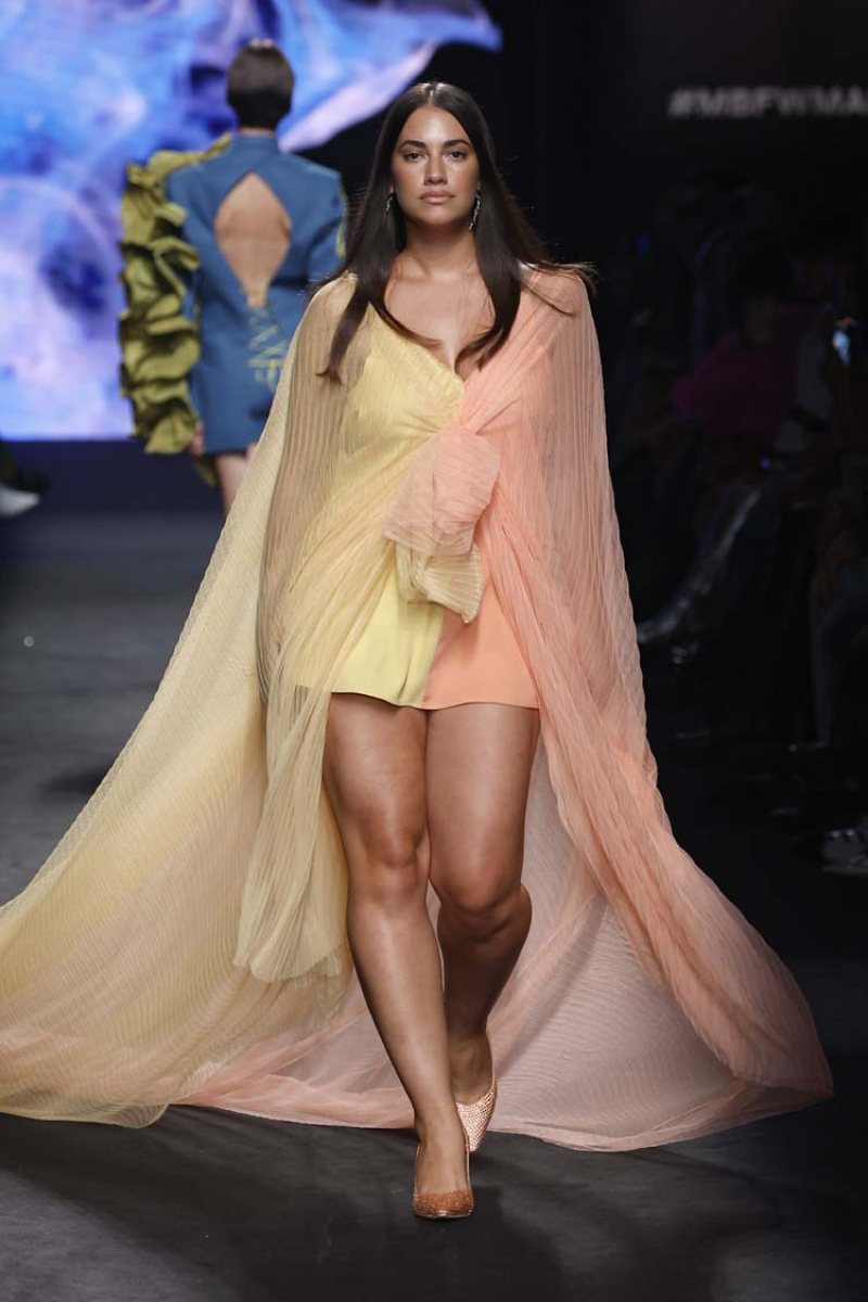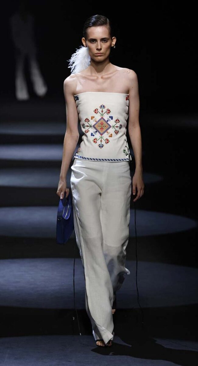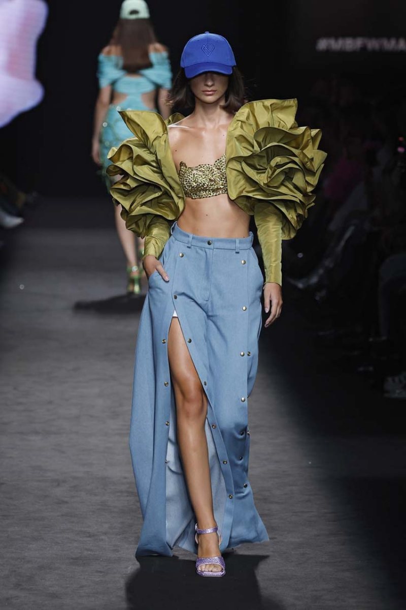 ¿Te imaginas la plaza de Colón de Madrid conquistada de color, estampados y diseños atrevidos? Claro que sí, porque Maison Mesa lo hizo. El diseñador tenía claro que quería marcar la agenda y así lo hizo. Mediante una pasarela de más de 100 metros, subió sus diseños icónicos. Donde la lentejuela y los escotes de espalda no faltaron. Después de 30 años en la industria de la moda, Maison Mesa no dejó de sorprender y este desfile fue el mejor ejemplo.