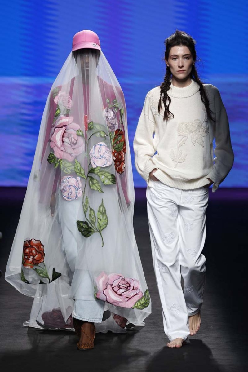 Al igual, que Pablo Erroz, JC Pajares realiza colecciones anuales. El diseñador se olvidó de las temporadas y se centró en hacer moda sostenible de verdad. Por ese motivo, hemos encontrado prendas tanto de verano como de invierno, donde la artesanía brilló. JC Pajares se toma muy en serio sus raíces, y como consecuencia, hubo presencia de encaje de bolillos o cerámica. A todo esto, como habrás comprobado, el diseñador hace un recorrido cromático que va del blanco al negro. Sin olvidar los tonos tierras que tanto le caracterizan.