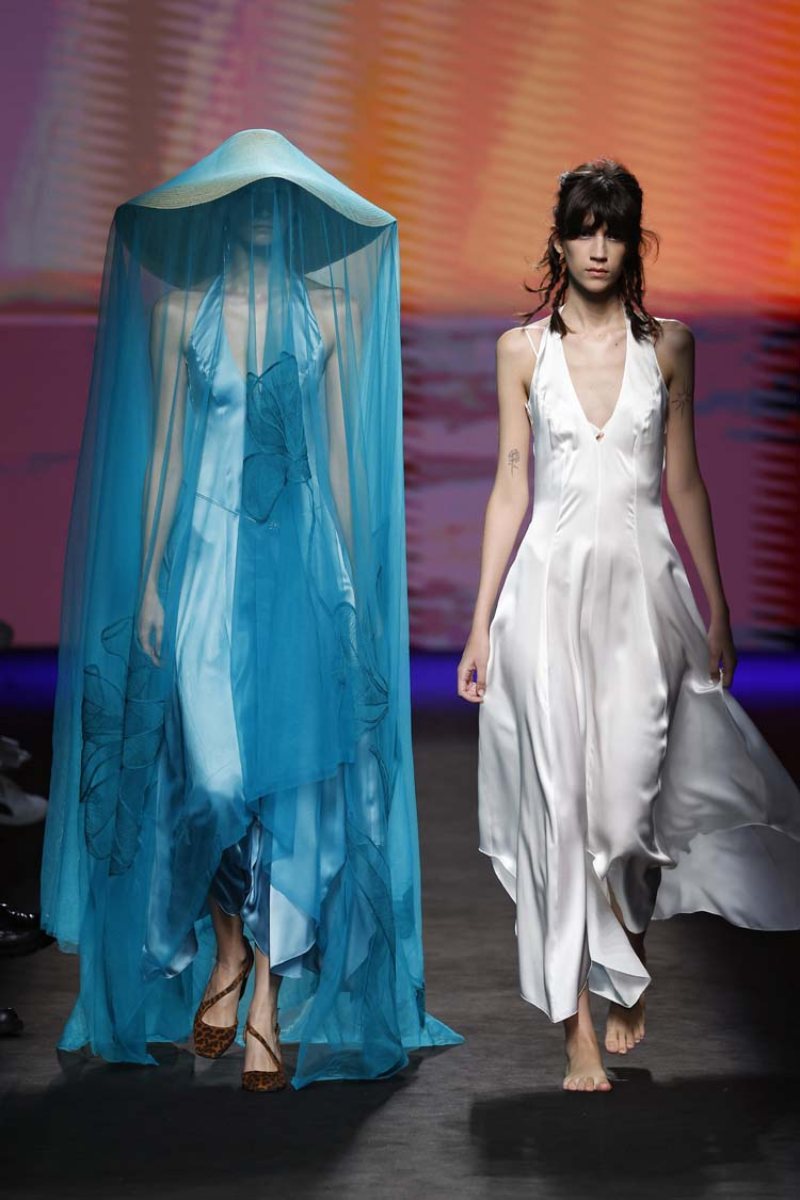 El cambio climático está afectando a todos los niveles, como por ejemplo la subida de la temperatura del mar. Claro Couture tiene claro qué hacer moda es mucho más, y por eso a través de sus diseños hace un homenaje al movimiento de los océanos en Mercedes-Benz Fashion Week. Éter es el nombre de la nueva colección que mediante la gasa, el tul o la seda. En algunas de las piezas se aprecian varias pinceladas que están inspiradas en el fondo del mar.